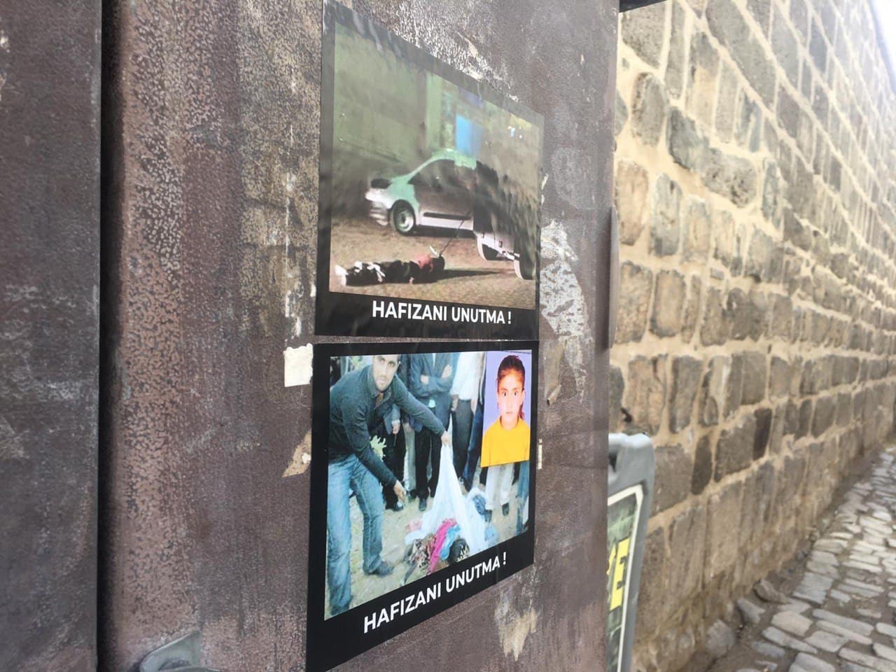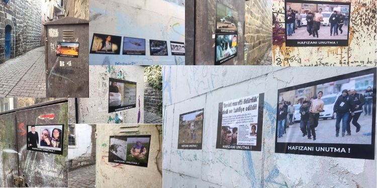 Amed’in Sur ilçesinin çeşitli mahallerine, bölgede kolluk güçlerinin ihmali nedeniyle yaşamını yitirenlerin fotoğraflarının yer aldığı ve “Hafızanı unutma” yazılı stickerlar yapıştırıldı.