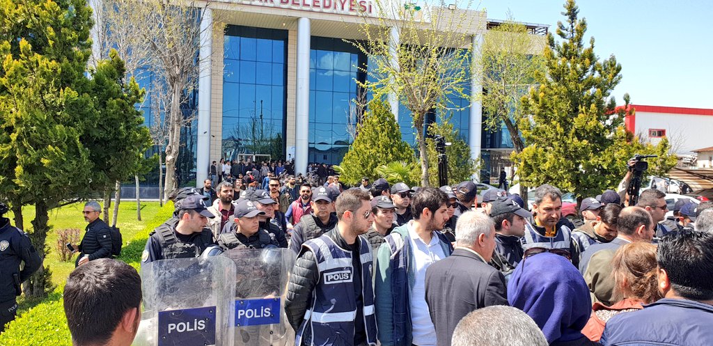 Belediye önünde toplanmaya engel olmaya çalışan işgalci polislere “Biz seçilmişiz, siz bizi engelleyemezsiniz” diyen meclis üyesine, “Siz seçilmiş değilsiniz kimsenin sizi seçtiği yok. Siz adaysınız, 13 parti vardı. Çekilin gidin buradan” diyerek bina önünden uzaklaştırmaya çalıştı. Yüzlerce işgalci polis belediye binasını ablukaya aldı.