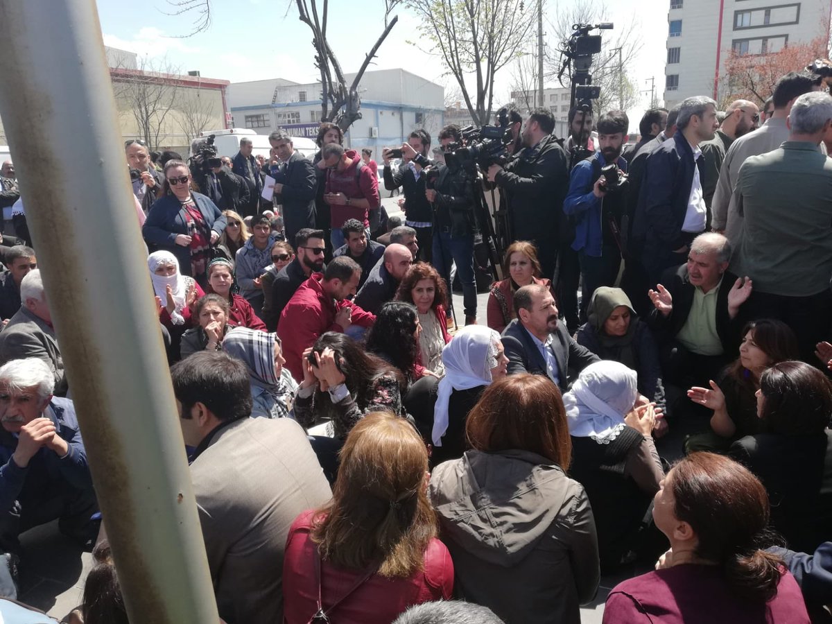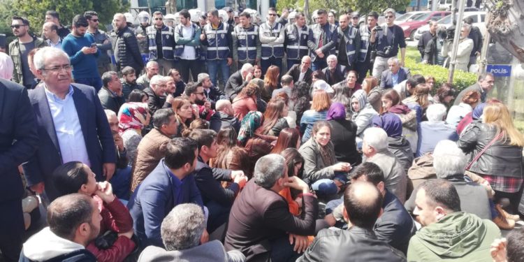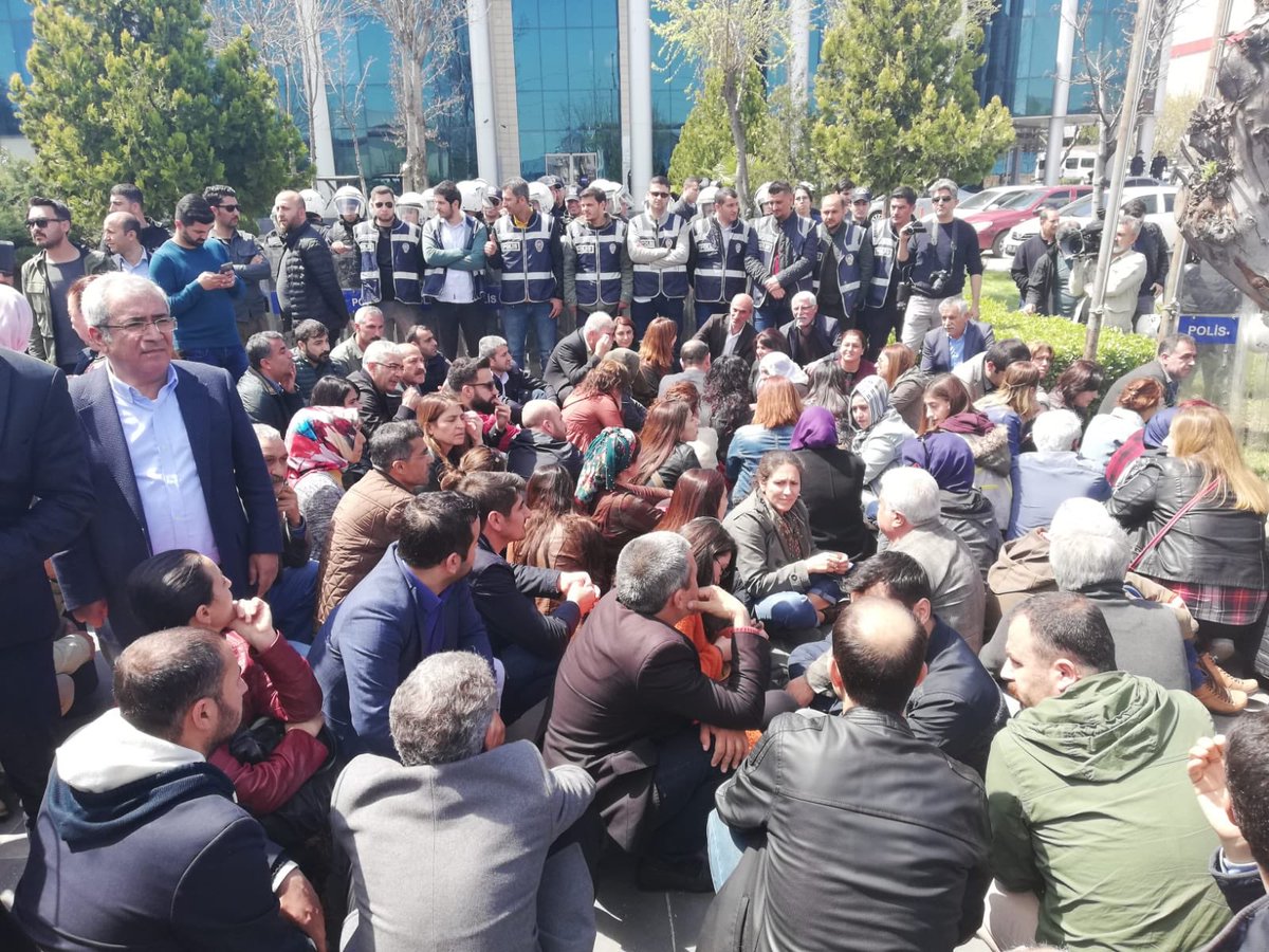 AMED – Dün akşam saatlerinde Yüksek Seçim Kurulu’nun (YSK) “KHK’lilerin mazbataları verilmeyecek, yerlerine ikinci yüksek oyu alan adaylar mazbata alacak” açıklamasının ardından Halkların Demokratik Partisi (HDP) Rezan Belediyesi önünde açıklama yapacaklarını duyurdu. Açıklamanın yapılacağı Rezan Belediyesi önünde bir araya gelen yurttaşlara işgalci polisler izin vermedi. Yurttaşları engelleyen işgalci polislerle uzun süre tartışan HDP’li yöneticiler belediye önünden ayrılmadı. Yurttaşları kalkanlar ile iten polisler, aralarında vekillerin ve belediye eşbaşkanlarının olduğu yurttaşları ise belediye bahçesine almadı.