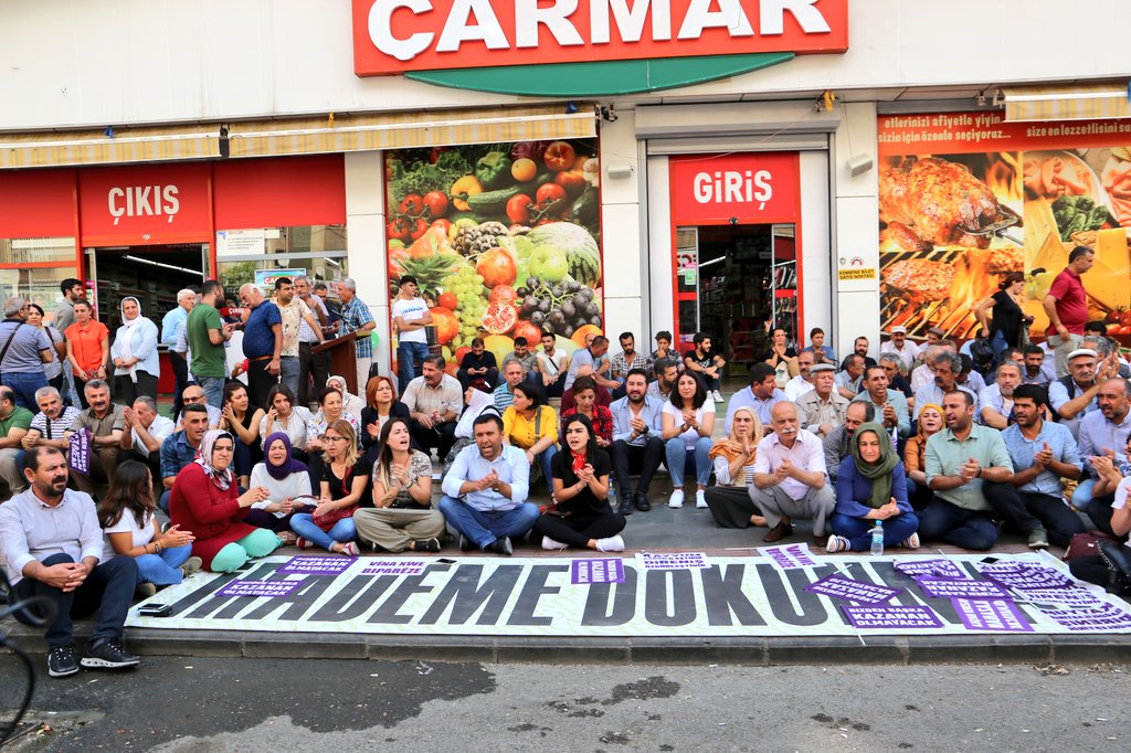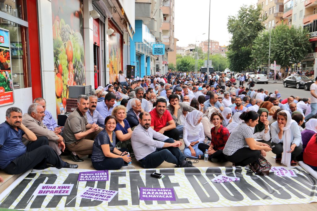 AMED – Amed, Mêrdîn ve Wan büyükşehir belediyelerinin gasp edilmesine karşı Amed’de başlatılan Demokrasi Nöbeti, belediye binası karşısındaki Lise Caddesi’nde devam etti.