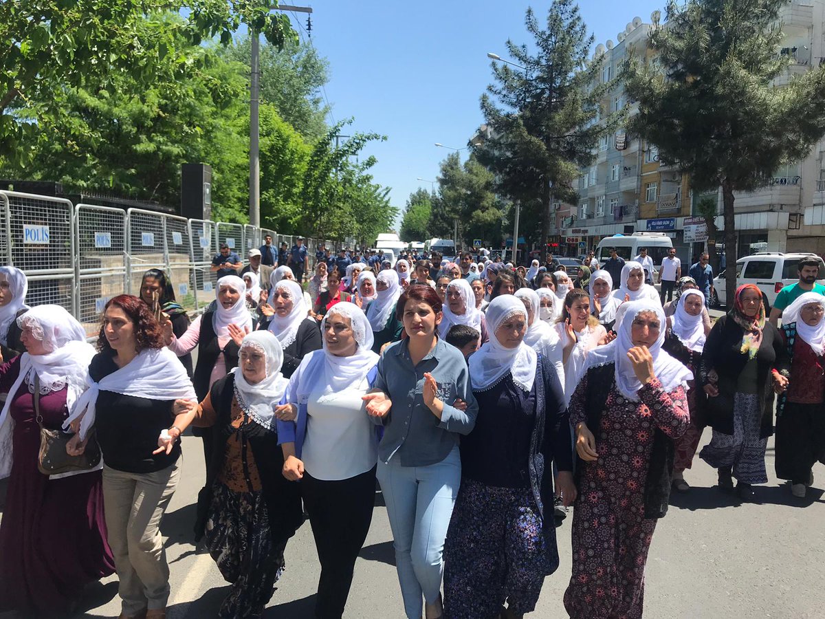 Annelere, Halkların Demokratik Partisi (HDP) Amed milletvekilleri Saliha Aydeniz, Remziye Tosun ve Semra Güzel,  HDP Amed İl Eşbaşkanları Hülya Uyanık Alökmen ve Zeyyat Ceylan ve TJA üyeleri destek verdi. Anneler sık sık “Bijî berxwedana zindanan”, “Direne direne kazanacağız”, “Leyla Güven onurumuzdur”, “Zindanlarda direnen yoldaşlara bin selam” ve “Hak hukuk adalet zindanlardan gelecek” sloganları attı. Dün Batıkent Kavşağı’nda yaptıkları oturma eylemi sırasında etraflarının zırhlı araçlarla çevrilmesine tepki göstermek için anneler, artık Batıkent Kavşağı’nda bir araya gelmeyeceklerini söyledi. İşgalci polisin, annelere destek vermek için gelen erkekleri alandan çıkarması ise dikkat çekti.