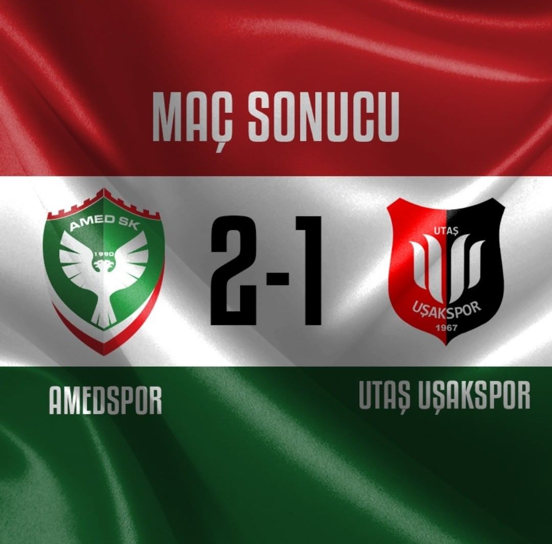 AMED – TFF 2. Lig Beyaz Grupta mücadele eden Amedspor kendi evinde Utaş Uşakspor’u konuk etti. Amedspor saat 13.00 da Yeni Diyarbakır Stadyumu’nda oynanan maçı 2-1’lik skor ile rakibini devirdi. Maçın ilk yarısında gol olmazken Amedspor ikinci yarıya hızla başladı üst üste ataklar yapan Amedspor Mansur Çalar ve Furkan Yaman’ın golleriyle maçın 75 dakikasında 2-0 öne geçti. Maçın uzatma dakikalarında Utaş Uşakspor adına Muhammed Rıdvan Özdemir ‘in golüyle farkı bire indirsede Amed spor 2-1’lik skorla maçtan galip ayrıldı.