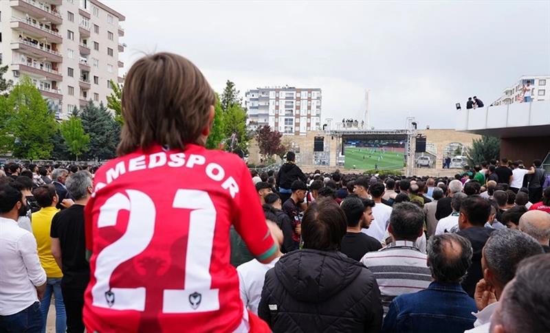 Türkiye Futbol Federasyonu (TFF) 2. Lig Kırmızı grupta 3 puan ve 10 averajla lider olan Amedspor, kendi sahasında Memenem Belediyespor ile karşılaşıyor. Onbinlerce Amedspor taraftarı, şampiyonluğa çok yakın takımlarını yalnız bırakmadı. Çevre ilçelerden de binlerce kişi bugün maçı izlemek için stada akın etti. Almanya, İsveç ve Hollanda gibi ülkelerden gelen çok sayıda taraftar dikkat çekti. Yüzlerine yeşil-kırmızı renklerle boyayan taraftarlar, uzun bir süre stat çevresinde davul ve zurna eşliğinde halaya durdu. Taraftarların coşkusu renkli görüntüler ortaya çıkardı.