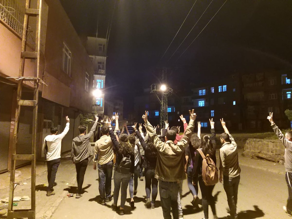 AMED – Halkların Demokratik Partisi (HDP) Gençlik Meclisi ve Genç Kadın Meclisi tecride karşı ve Demokratik Toplum Kongresi (DTK) Eşbaşkanı ve Halkların Demokratik Partisi (HDP) Colemerg Milletvekili Leyla Güven’in öncülüğünde başlatılan açlık grevi ve ölüm oruçlarına dikkat çekmek amacıyla Yenişehir ilçesinin şehitlik mahallesinde yürüdü.