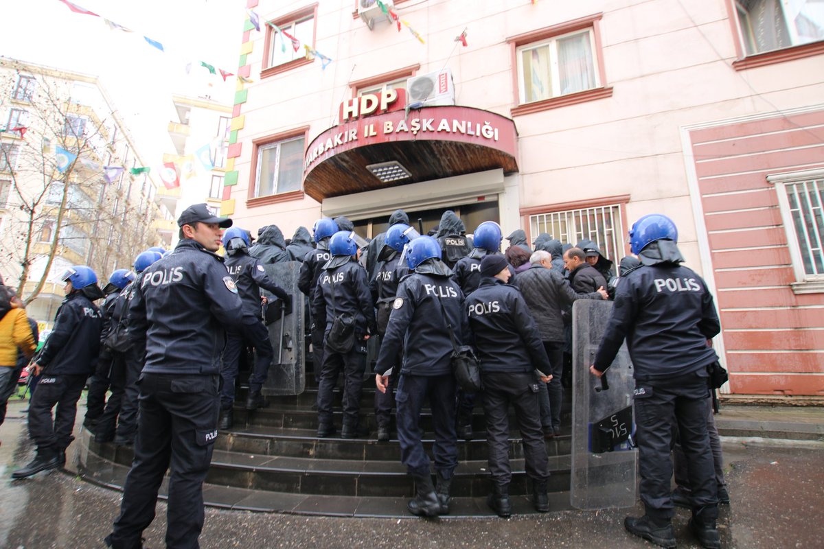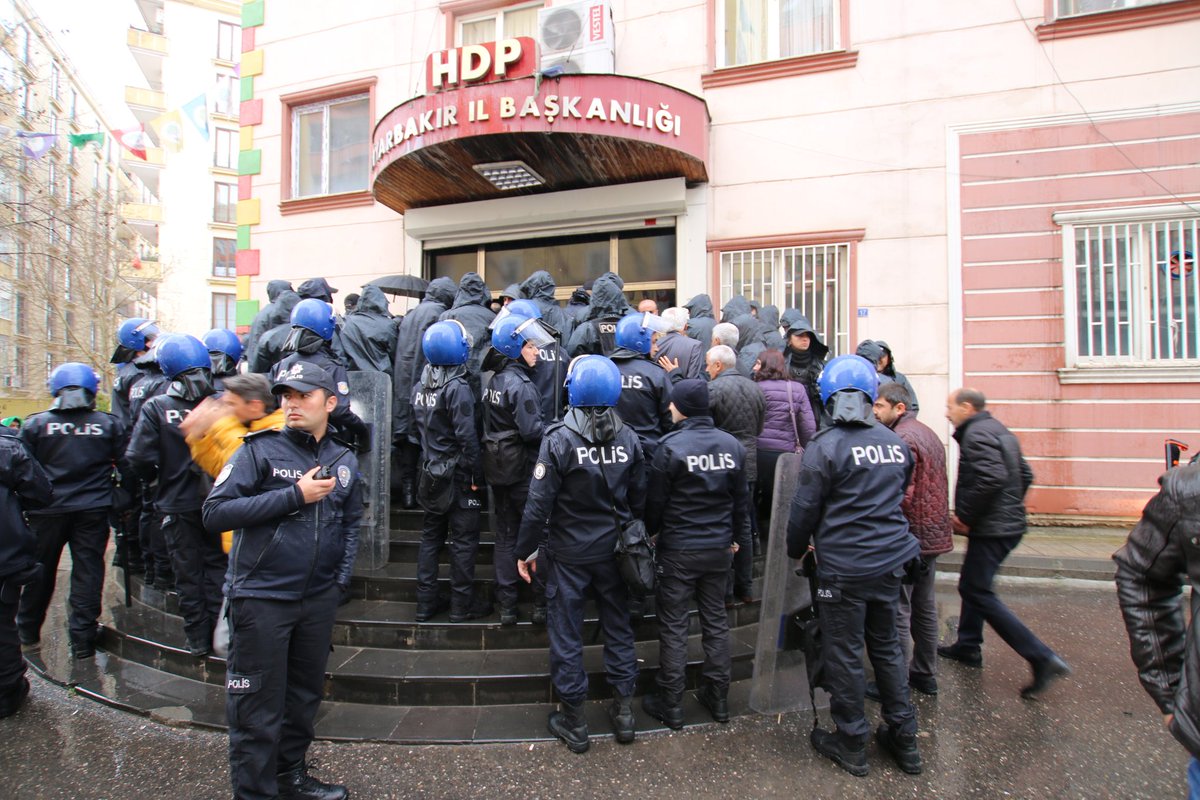 HDP’nin, Amed mitinginin aşırı yağış nedeniyle iptal edilmesi ardından kentte düzenlemek istediği araç konvoyu için hazırlanan ve üzerinde “talebi talebimizdir-Leyla Güven” yazılı balonların parti binasından çıkarılmasına işgalci polis engelledi.