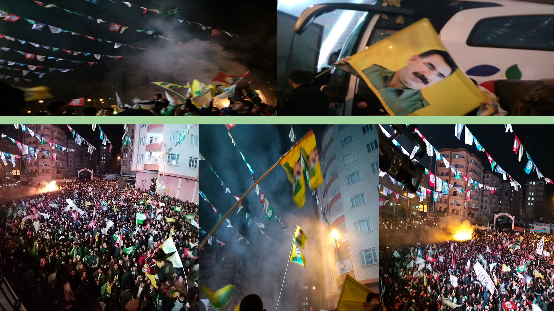 Kutlamalara katılan yüzlerce yurttaş ellerinde Halklar Önderi Abdullah Öcalan’ın posterleriyle sokaklara çıktı. Kutlamalar halen devam ediyor.