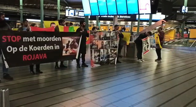 AMSTERDAM – Dün akşam saatlerinde bir araya gelen Kürt Gençleri ve Avrupa’da ki Kürt Kadın Örgütleri Kürdistan’da faşist TC ve işbirlikçisi KDP tarafından yapılan işgal saldırılarında kullanılan kimyasal gaza karşı Amsterdam Schiphol Havaalanı’nda bir sivil itaatsizlik eylemi gerçekleştirdi.