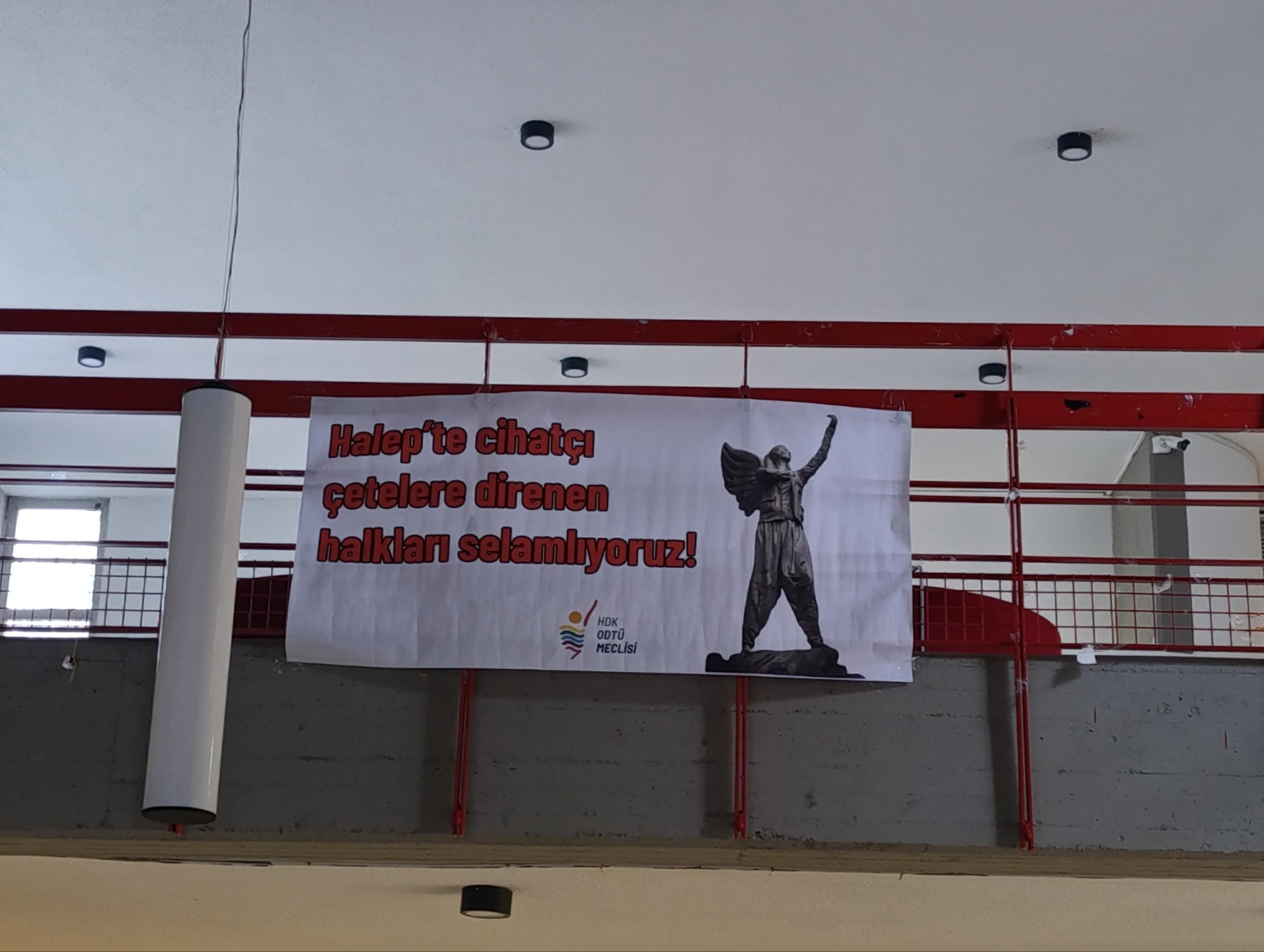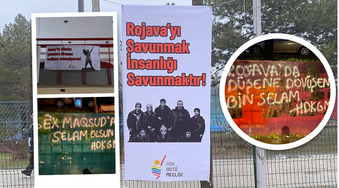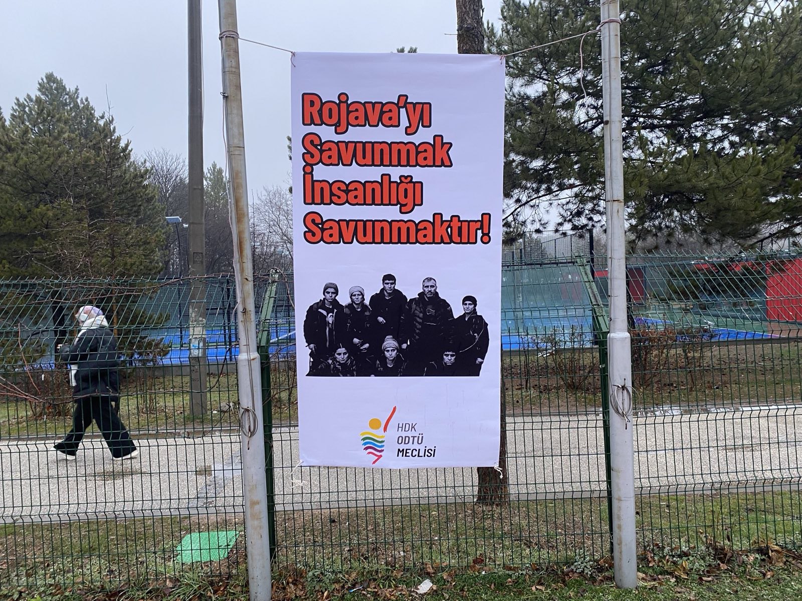 Öte yandan HDK ODTÜ Meclisi de Şêxmeqsûd direnişini selamlamak için Orta Doğu Teknik Üniversitesi (ODTÜ) Devrim Stadyumu ve üniversite yemekhanesine pankart astı. Asılan pankartlarla Rojava’daki direniş asılan pankartlarla selamlandı.