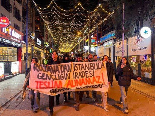 ANKARA – Ankara gençlik örgütleri İstanbul Beyazıt’ta bugün gerçekleşen gözaltılara karşı ve HTŞ ve Türk devletine bağlı çetelerin Halep’in Şêxmeqsûd ve Eşrefiyê mahallelerine yaptıkları saldırıları, Kızılay’da yaptıkları yürüyüş ile protesto etti.