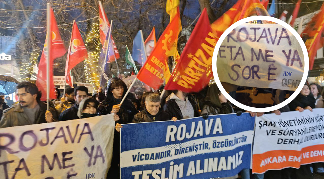 ANKARA – Ankara Emek ve Demokrasi Güçleri, Suriye Geçici Hükümeti’ne bağlı silahlı grupların Halep’in Kürt yoğunluklu Şêxmeqsûd ve Eşrefiyê ile Süryanilerin yaşadığı Benî Zêyd mahallelerine saldırılarına karşı basın açıklaması düzenledi. Kürtçe ve Türkçe yapılan açıklamanın Kürtçesini Halkların Eşitlik ve Demokrasi Partisi (DEM Parti) Kadın Meclisi Üyesi Nebahat Çalpan okurken, Türkçesini ise Devrimci Parti Ankara İl Başkanı Mustafa Uğur Akkaya yaptı. Akkaya, Halep ve Rojava’ya yönelik saldırıların savaş suçu olduğunu belirtti.