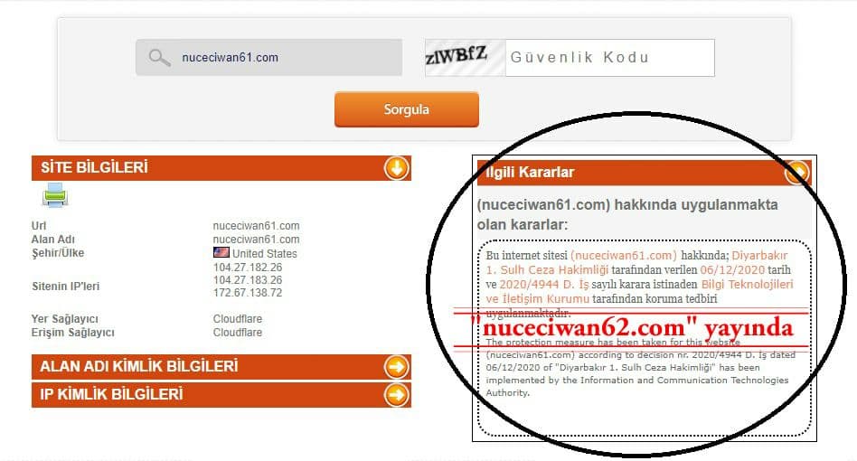 nuceciwan61.com sitemiz hakkında uygulanmakta olan kararlar ise şöyle;