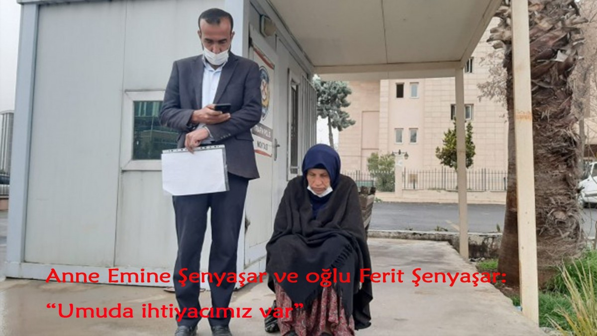Eşi Hacı Esvet Şenyaşar, çocukları Celal ve Adil Şenyaşar’ın AKP milletvekili Halil İbrahim Yıldız’ın korumaları ve akrabaları tarafından öldürülmesi, olay sonrası oğlu Fadıl Şenyaşar’ın tutuklanmasına dair adalet talebini sürdüren anne Emine Şenyaşar ile oğlu Ferit Şenyaşar’ın Riha Adliyesi önündeki eylemi 15’inci gününde. Anne ve oğul, etkili yağışa rağmen sabah saatlerinde adliye önüne gelerek eyleme devam etti.