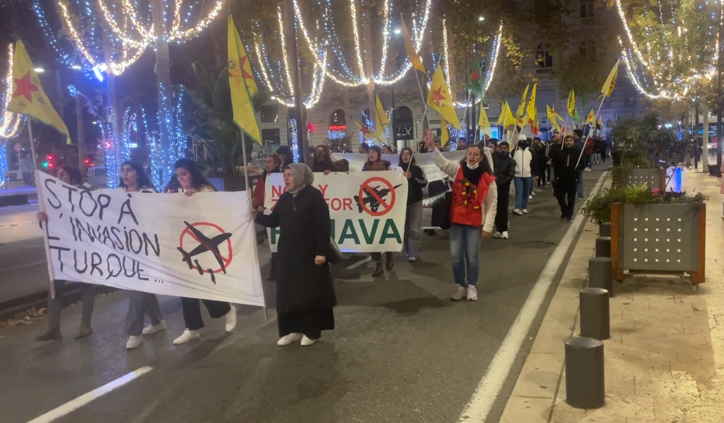 ANTİBES – Tevgera Ciwanên Şoreşger (TCŞ) ve Draguignan Halk Meclisi tarafından, faşist Türk devleti ve çetelerinin Rojava’ya dönük işgal saldırılarına karşı yürüyüş düzenlendi.