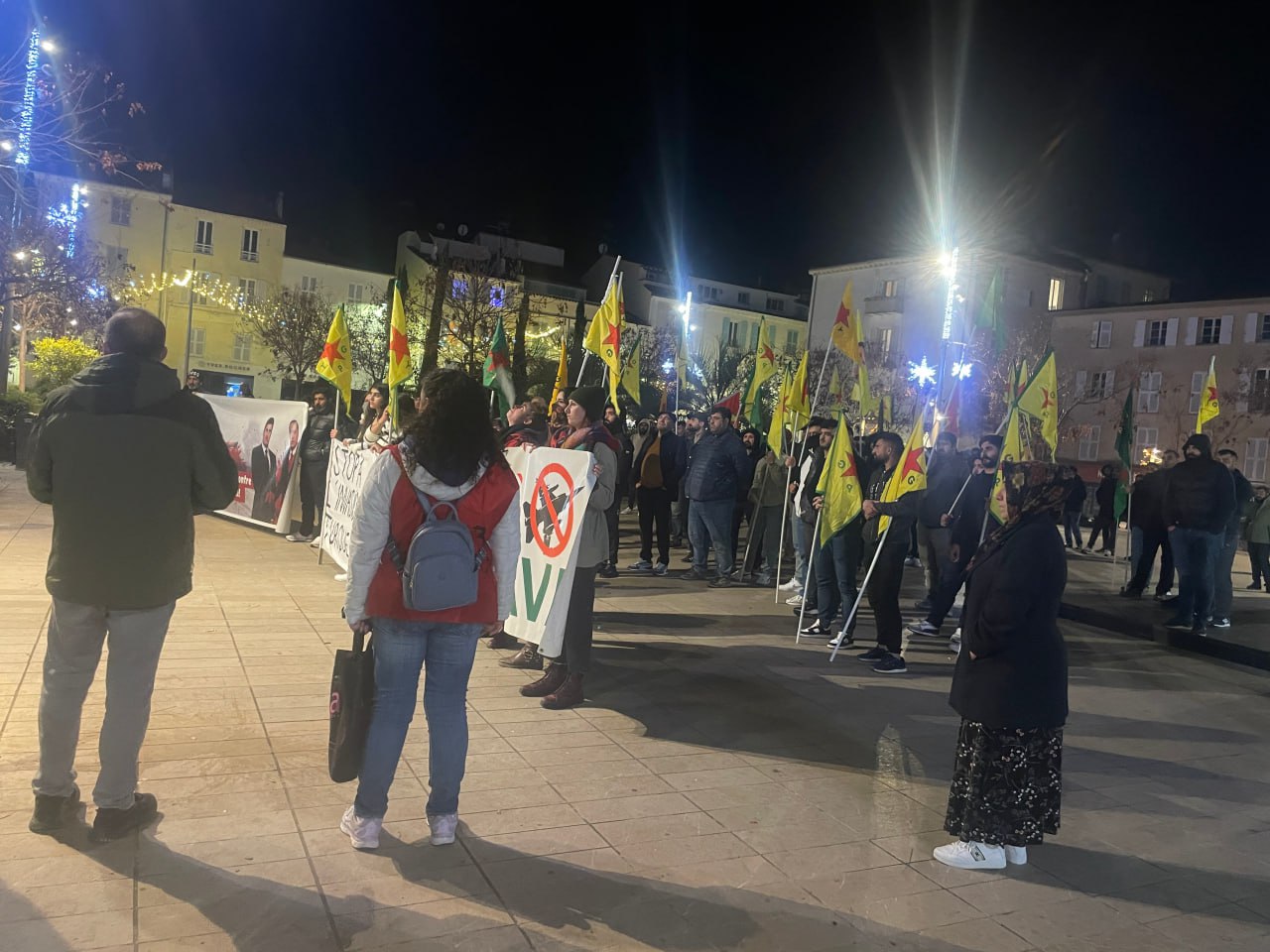 Antibes Merkez Tren Garın’da yürüyüşe başlayan eylemciler, şehir merkezine kadar “Bijî Serok APO”, “Kürdistan Faşizme Mezar Olacak”, “Bijî Berxwedana Gerîla” sloganları ile yürüdü.