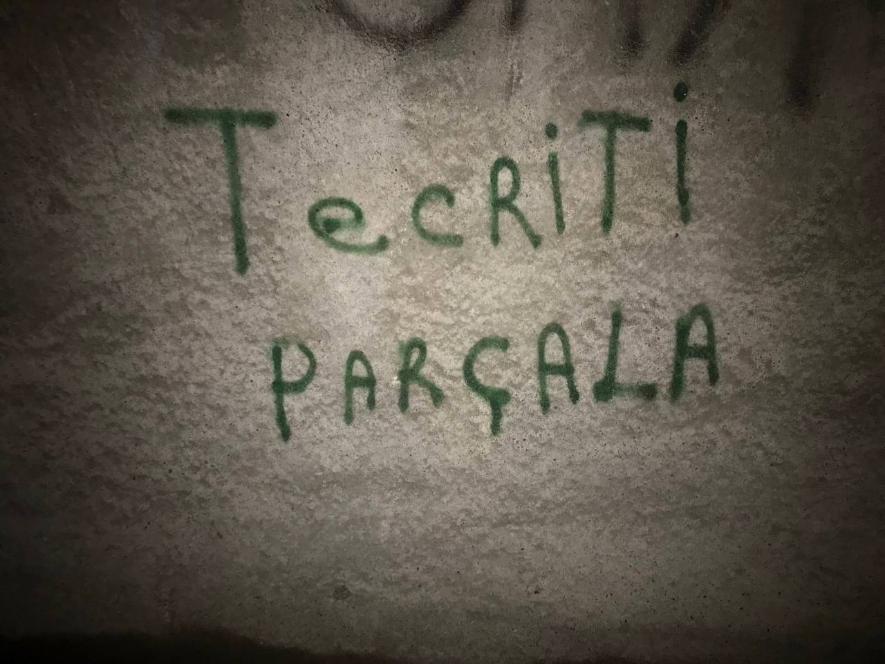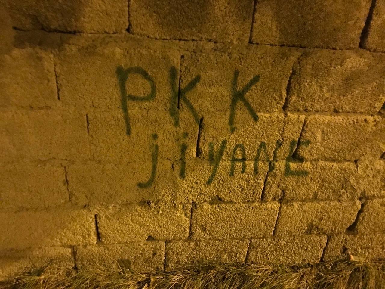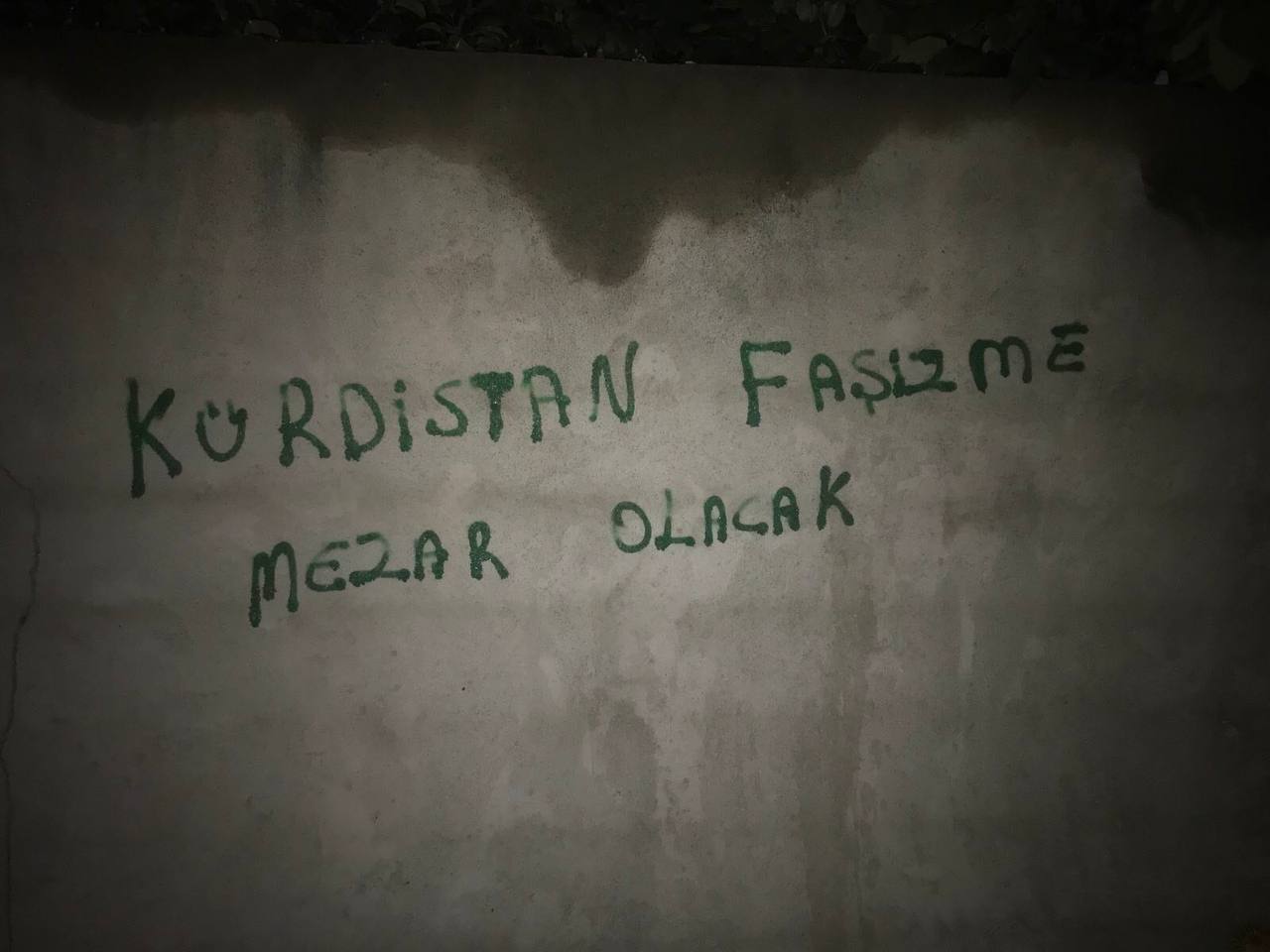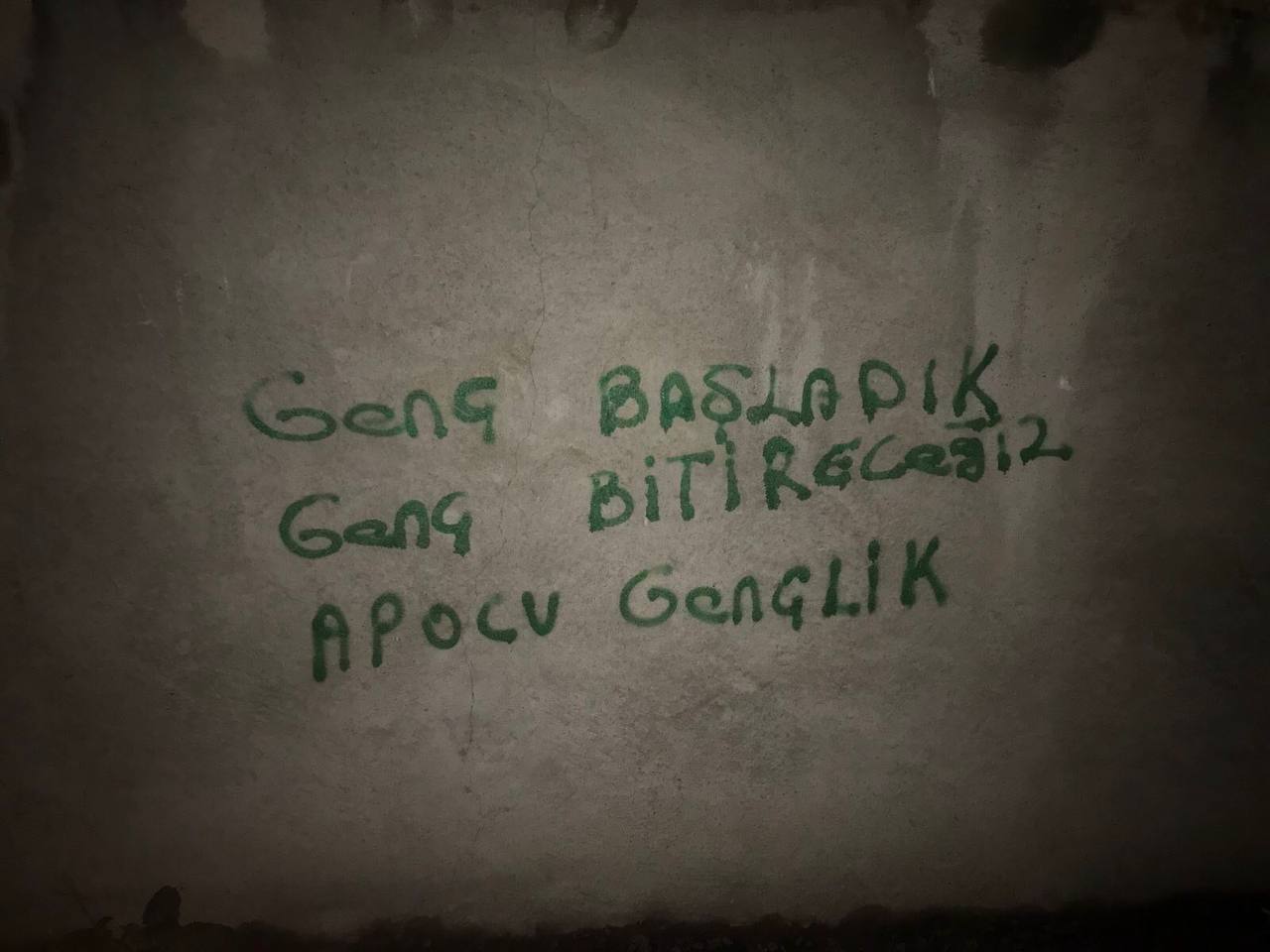Gençler tarafından, duvarlara Kürtçe ve Türkçe dilleriyle “Bijî Serok APO” “Tecriti Parçala” “Gerîla Rumeta Me Ye” “Genç Başladık Genç Başaracağız” ve daha bir çok slogan yazıldı.