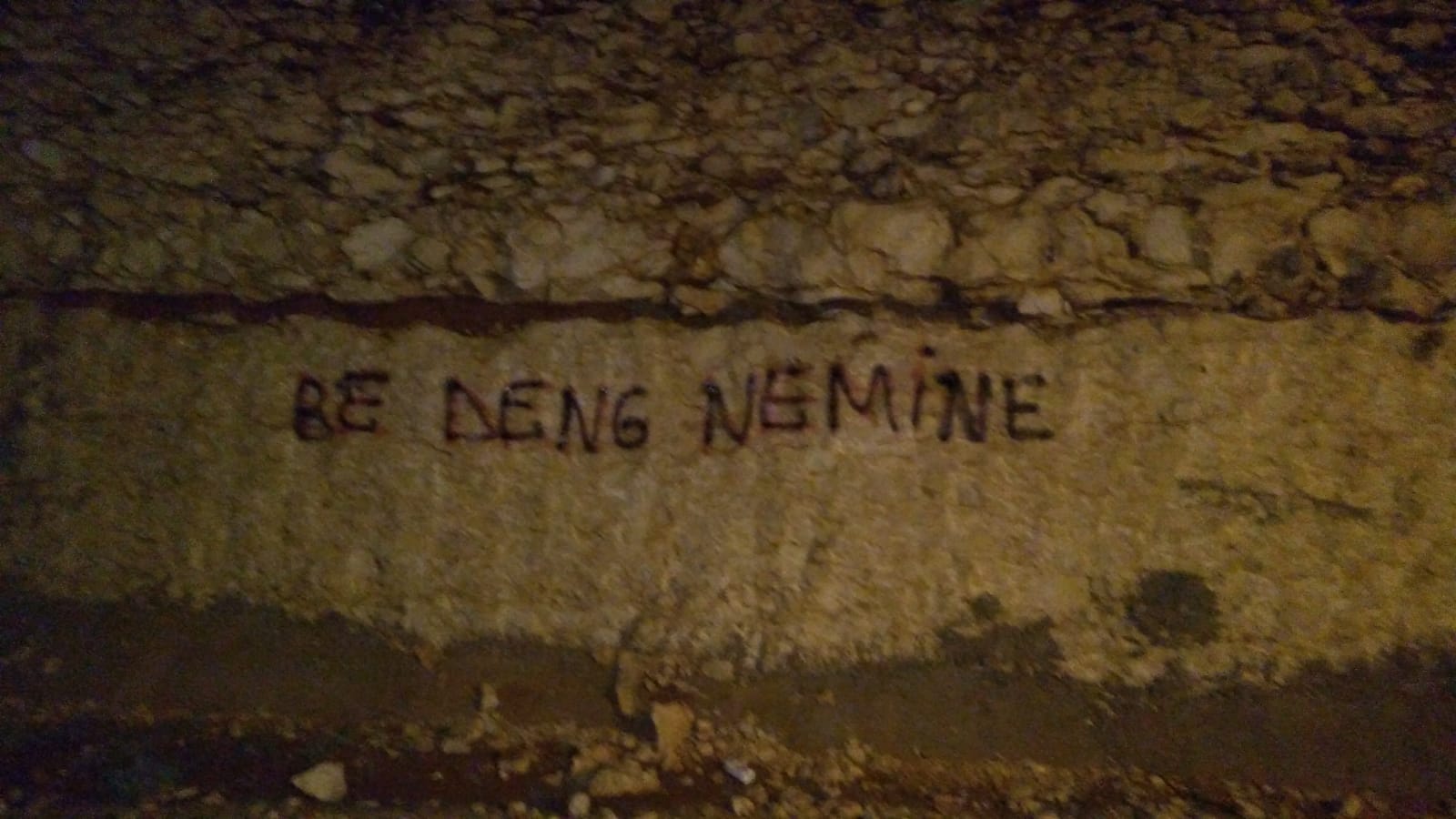 MÊRDÎN – Mêrdîn Artuklu Üniversitesi öğrencileri, Kampüs ile yurt arasında Üniversite’nin içinde yazılama eylemi yaptı.