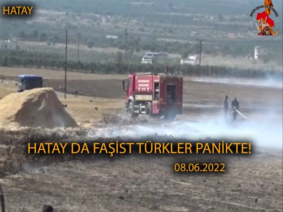 06.06.2022 Hatay Kırıkhan-Hassa karayolunda Kürt düşmanlarına ait samanlar ateşe verilmiş, çıkan dumandan kapanan yolda paniğe kapılan faşist türkler 7 araçla kaza yapmıştır.”