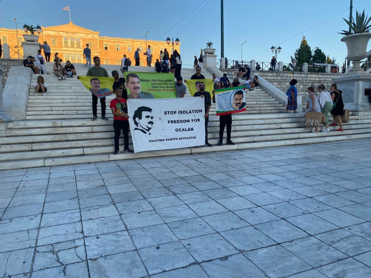 Yunanca “Önder Apo’ya Özgürlük”, “Kürdistan’a Özgürlük” ve “Biji Serok APO” sloganları atıldı.