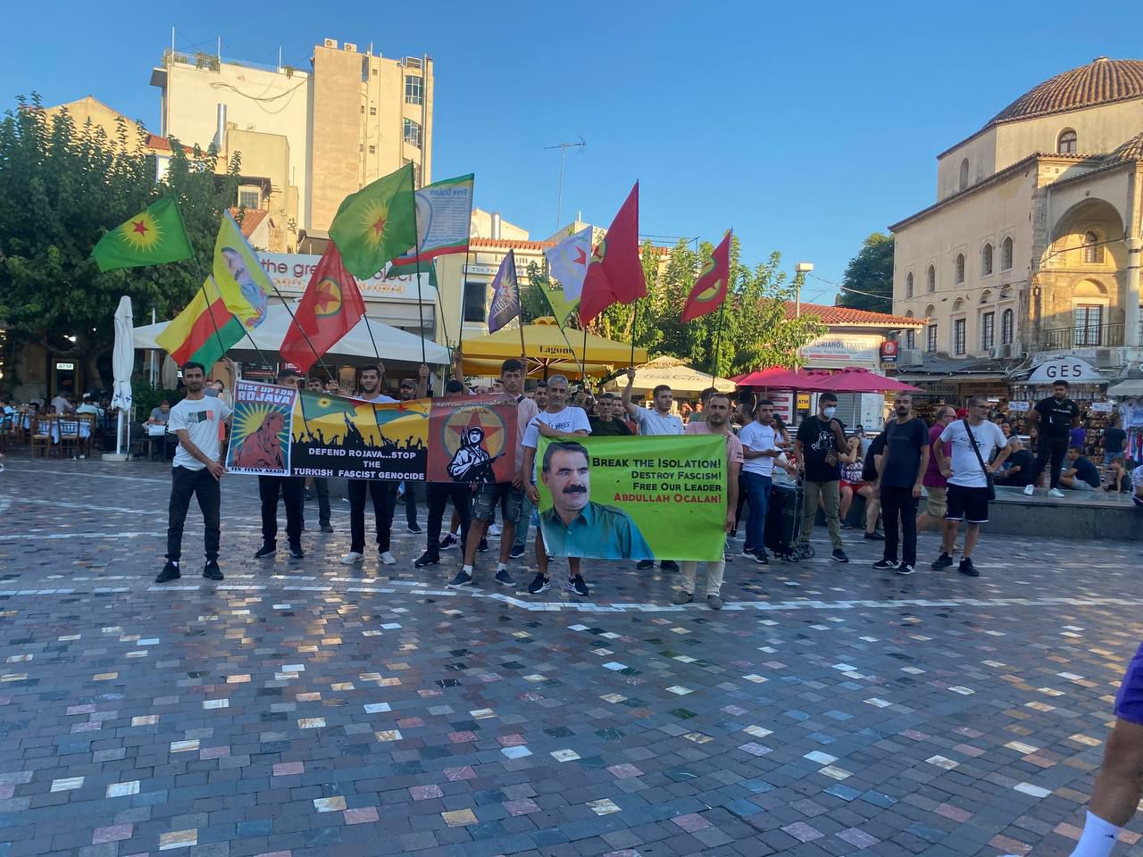 Atina’nın en işlek turistik yerlerinden biri olan Monestraki’de, Önder APO’nun özgürlüğü için ve Kürdistan’a yönelik işgal saldırılarını protesto etmek amacıyla gençler bir araya geldi. Alanda pankart açıp Çerxa Şoreşê okuyan aktivistler turistlerin yoğun ilgisini çekti. Daha sonra yürüyüşe geçen gençler sloganlarla eylemi sonlandırdı.