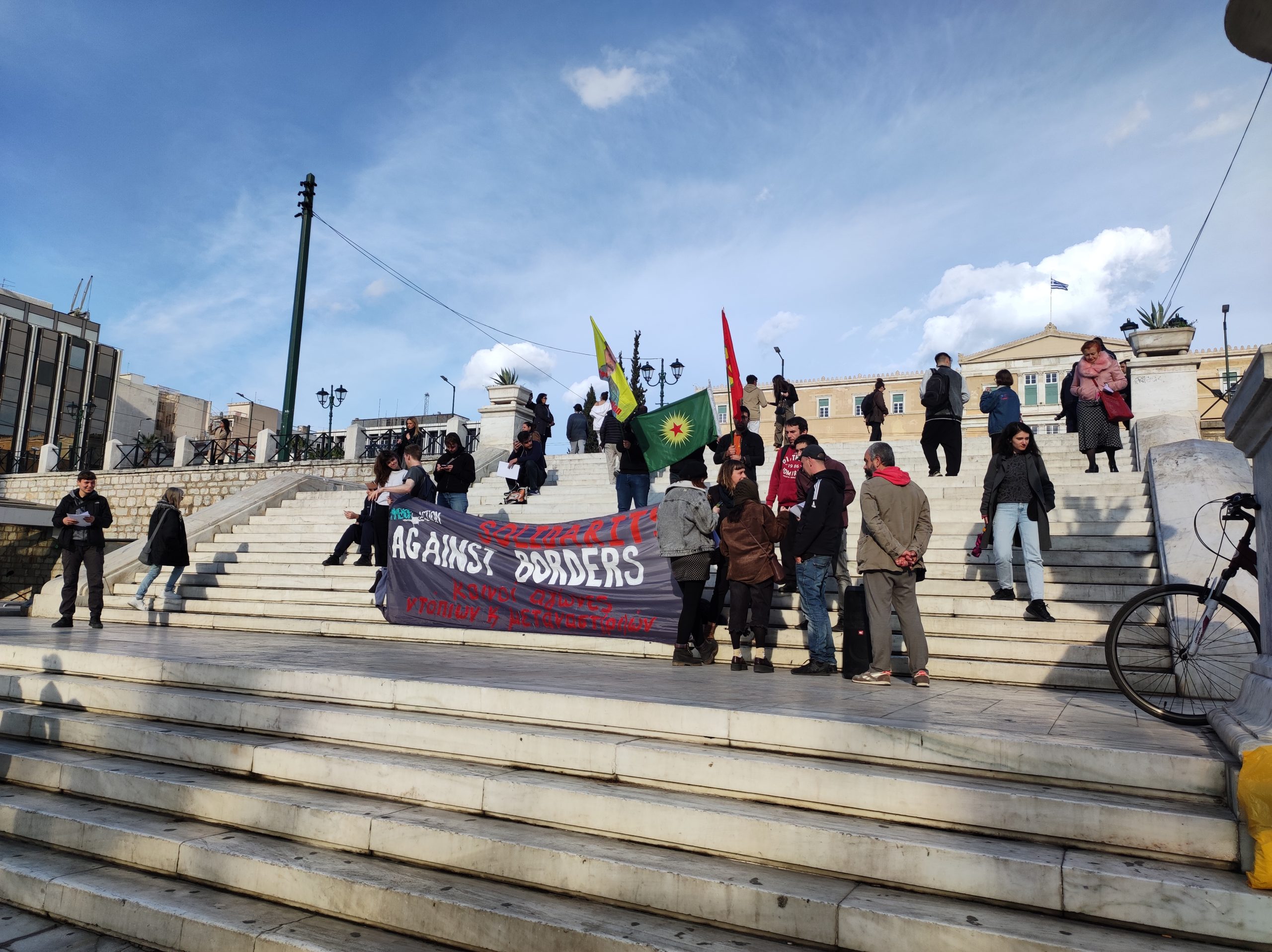 Atina saati ile 17.30’da Syntagma Meydanın’da (Yunanistan Meclisi karşısında) başlayan eylemde Faşist TC devletinin zulüm ve keyfi tutuklamaları dolayısı ile yaşam alanlarından izolasyonu göze alarak yol çıkan mültecileri hukuksuzca geri atan Yunanistan’ı kınandı.
