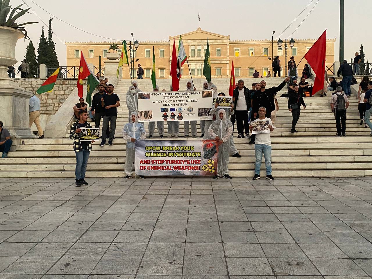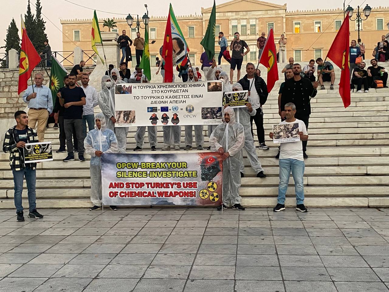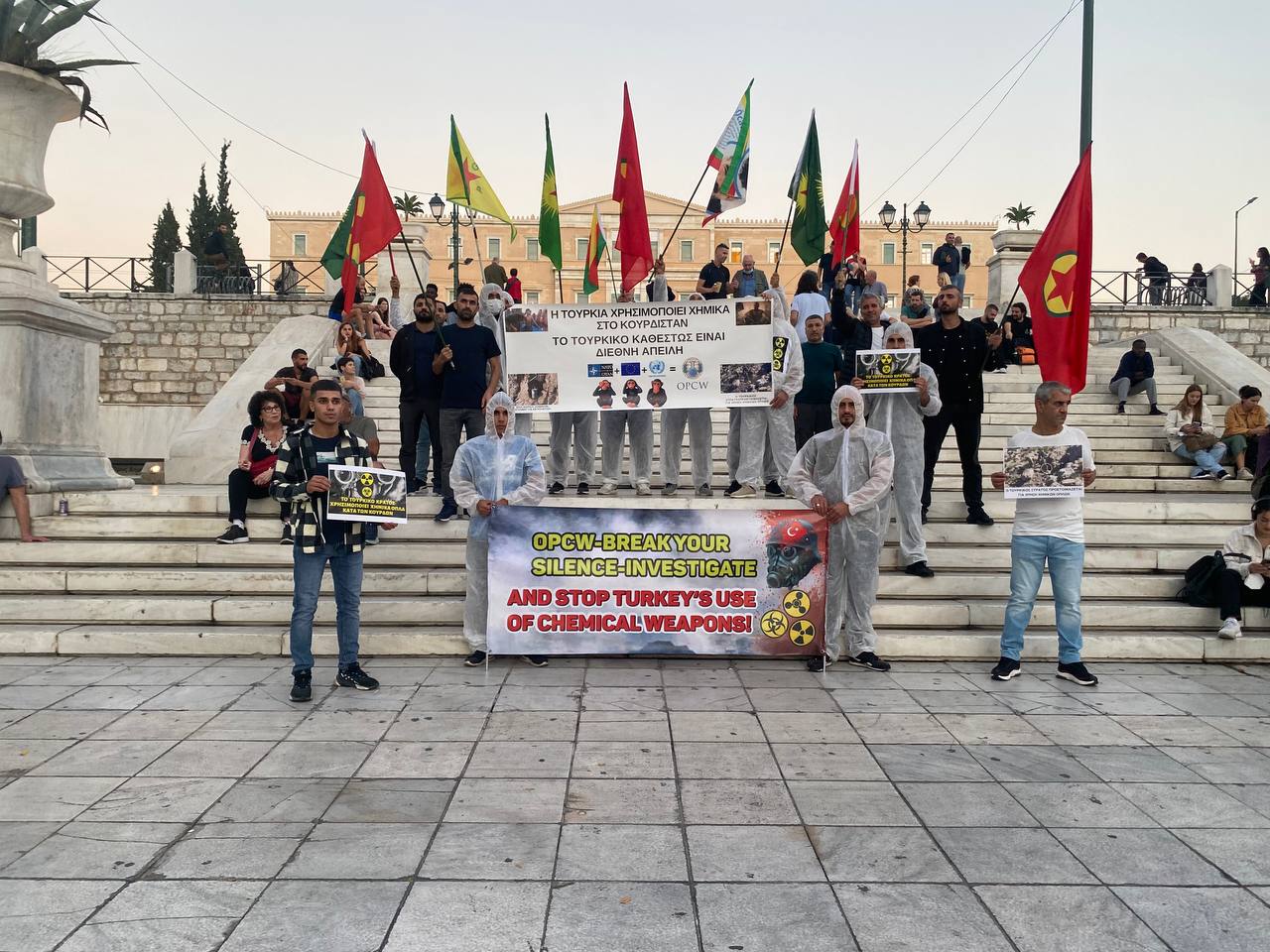 ATİNA – TCŞ gençliği bugün Atina’da işgalci TC devletinin kimyasal silah kullanımına karşı eylem gerçekleştirdi.