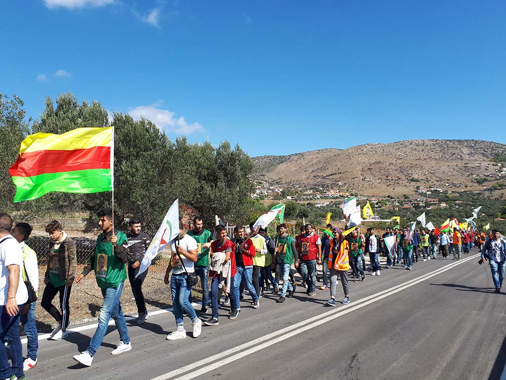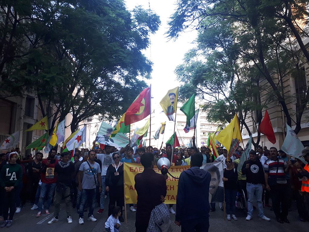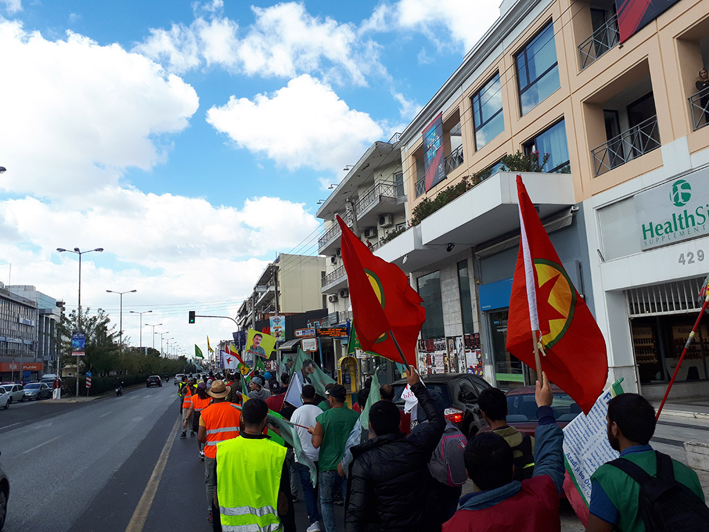 Atina’nın ünlü Syntagma meydanına ulaşan kortej, burada bulunan Yunan parlamentosuna bir dosya sunduktan sonra TC konsolosluğuna doğru yürüyüşe başladı. Yunan polisinin TC Atina konsolosluğu önünde barikatlar kurduğu ve yoğun güvenlik önlemleri aldığı görüldü. Eylem boyunca Kürt halkıyla birlikte yürüyen Yunan bir Kürt dostu burada bir konuşma yaptı ve Kürt halkıyla olan dayanışmasını dile getirdi. Ardından gençlik ve eylem komitesi adına yapılan konuşmalarda devletlerarası komplo lanetlendi. Gençlik adına yapılan konuşmada tüm Kürt gençlerine Rêber APO etrafında kenetlenme çağrısı yapıldı. “Güneşimizi karartamazsınız” şehitleri şahsında tüm Kürdistan ve devrim şehitleri anıldı. Eylem, “Bijî Serok APO”, “Be Serok jiyan nabe”, “Kahrolsun 9 Ekim komplosu” ve “Katil Faşist Türkiye” sloganları eşliğinde sonlandırıldı.
