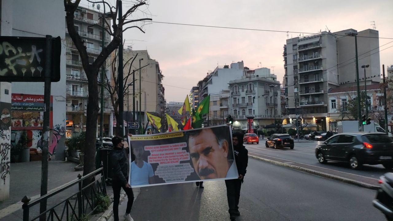 Bugün Yunanistan'ın başkenti Atina'da tecride karşı yürüyen Kürtler ve dostları Türk faşizmi durdurun dedi, Önder Apo'nun fiziki özgürlüğü için yürüdü.