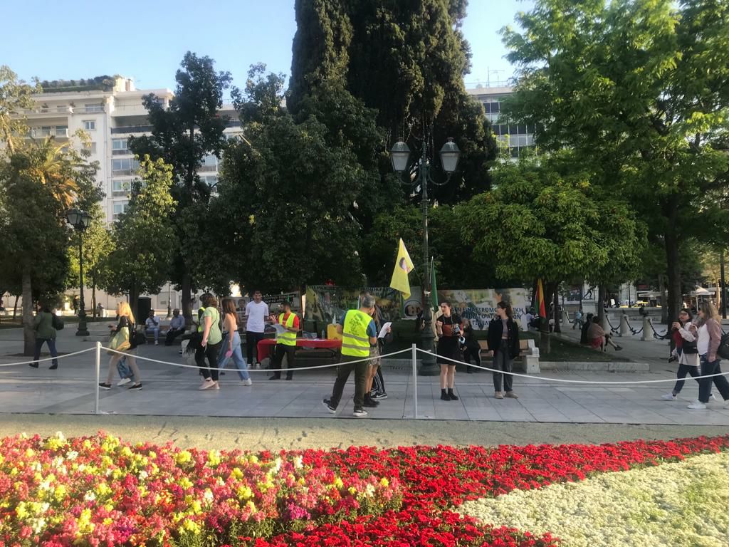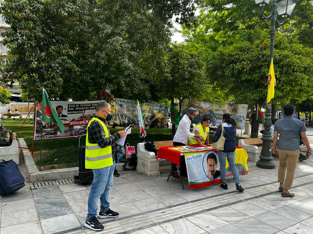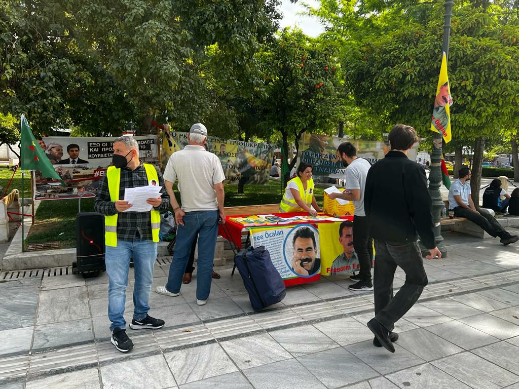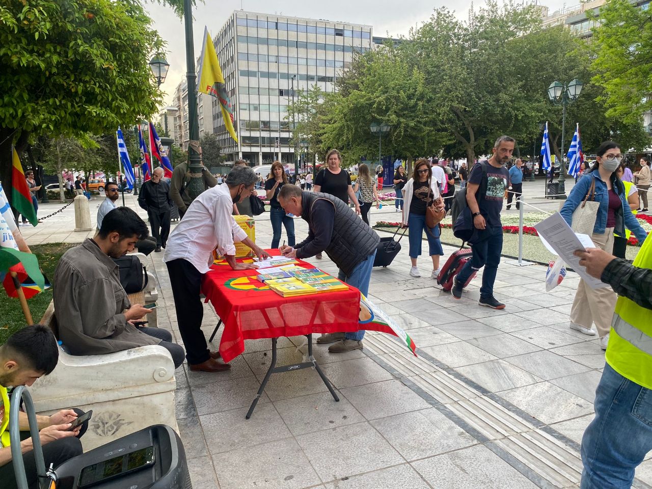 Turistik bir park olan Syntagma da açılan stand büyük ilgi görürken KDP ihanetini teşhir eden pankartlar açıldı.