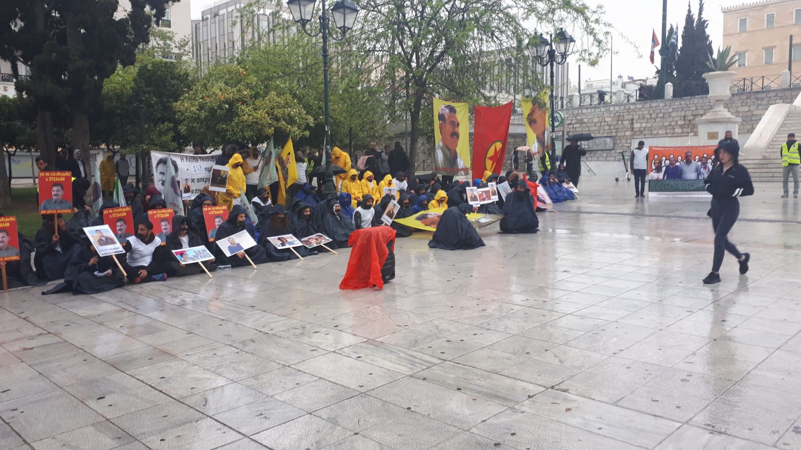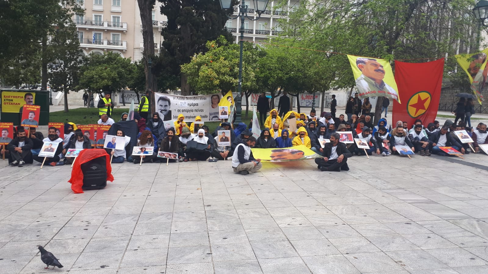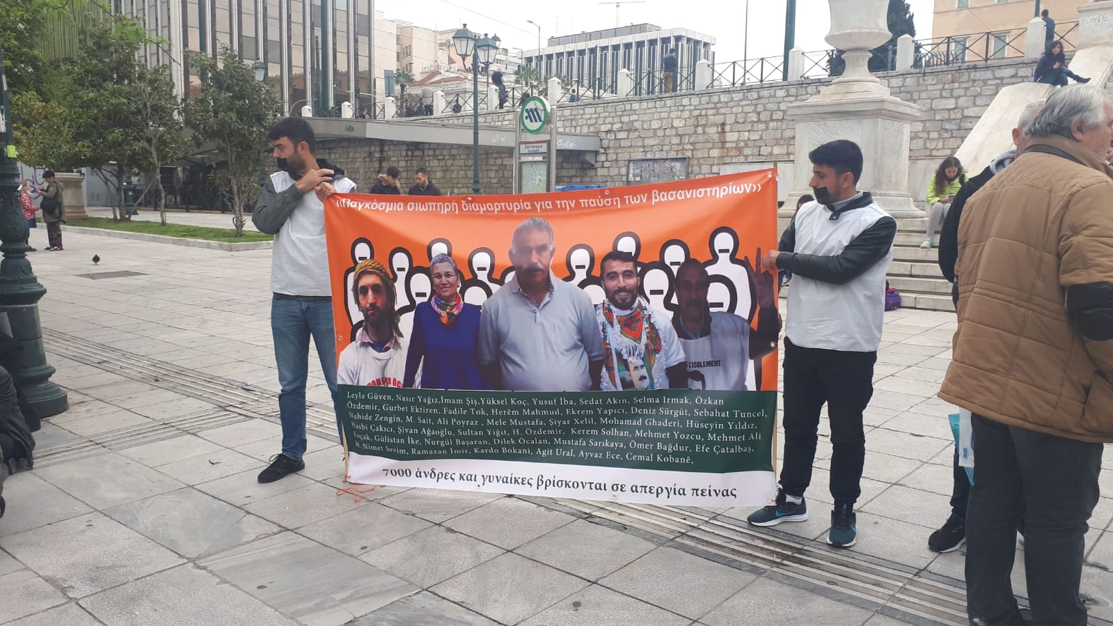 ATİNA – Beyaz yeleklerle oturma ve sessizlik eylemi yapan kitle, yüzlerine siyah bant çekerken, Avrupa, Kürdistan ve dünyada binlerce kişinin tecridin son bulması amacıyla grevde olduğuna dikkat çekildi.