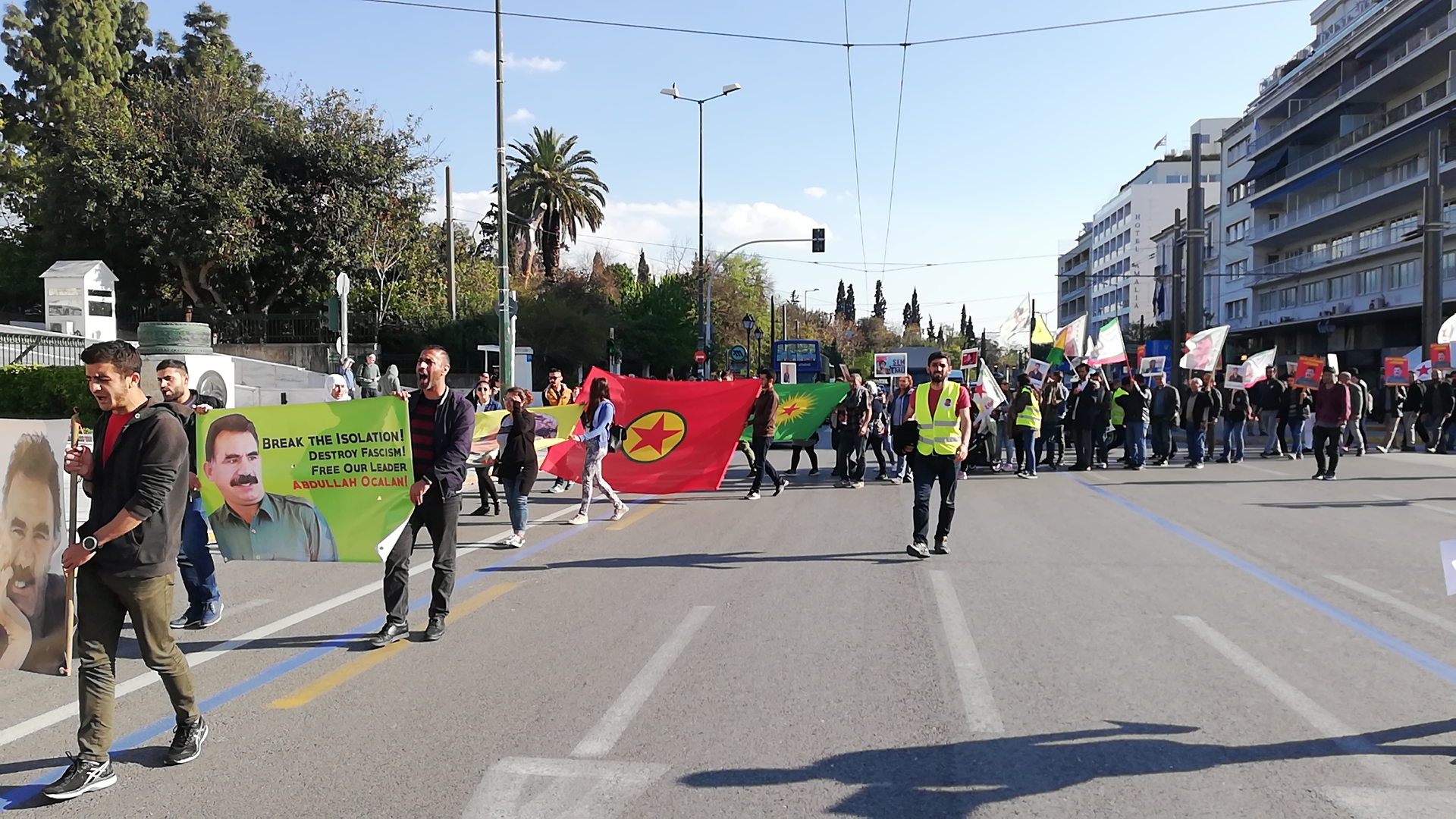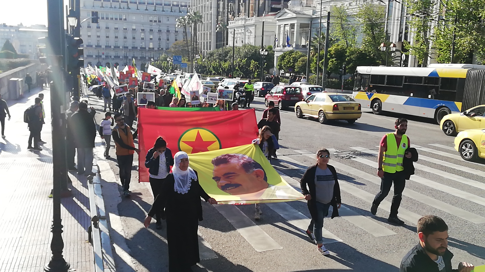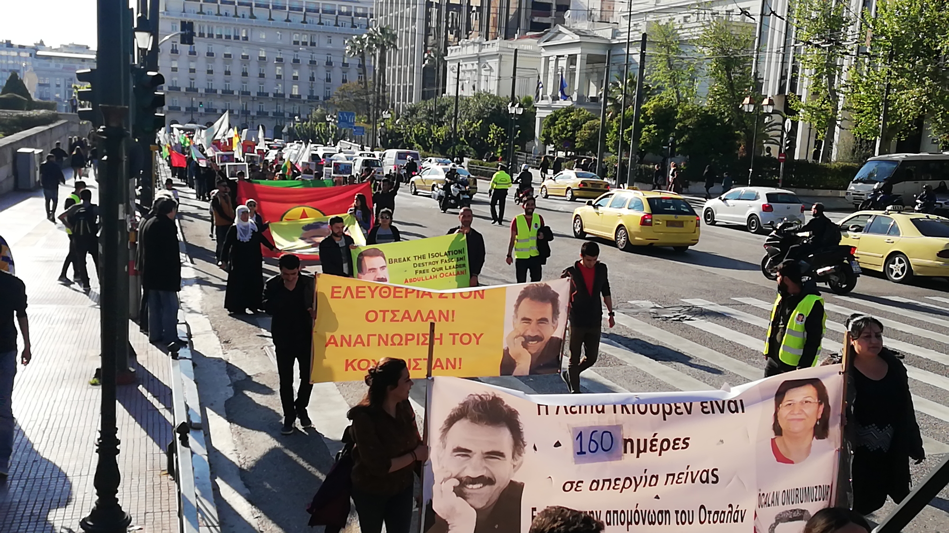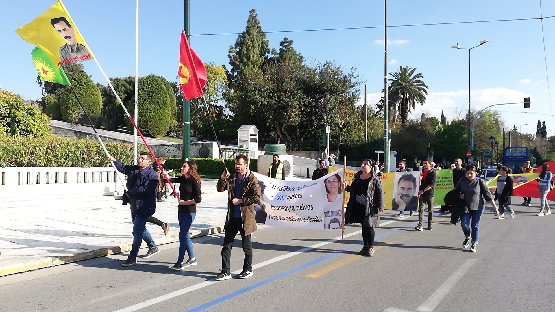 ATİNA – Yunanistan Eylem Birliği’nin organize ettiği eylem Akademia Meydanı’nda başladı. Halklar Önderi Abdullah Öcalan’ın posterleri, KCK, PKK, HPG ve sol örgütlerin bayraklarının taşındığı yürüyüşte “Bijî berxwedana zindana”, “Bijî Serok Apo”, “Yaşasın devrimci dayanışma” ve “Öcalan’a özgürlük” sloganları atıldı.