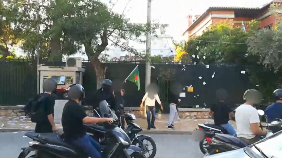 ATİNA – Yunanistan’ın başkenti Atina’da enternasyonal gruplardan Rouvikonas, işgalci Türk devletinin Kurdistan’a yönelik işgal saldırılarını protesto etmek amacıyla faşist Türk Konsolosluğu önünde eylem yaptı.