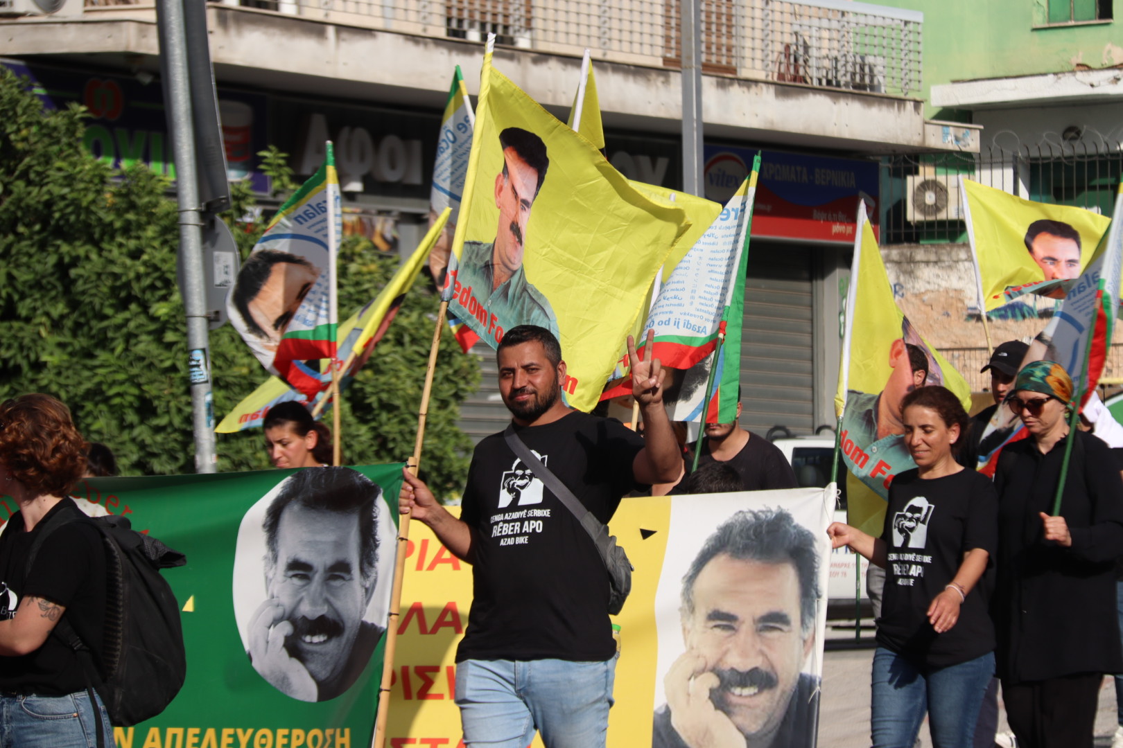 Son gün Pallini’den Türk Konsolosluğu’na kadar yürüyen gençler sık sık “Bijî Serok APO” , “Left left lefterya”, “Bê Serok Jiyan Nabe” sloganları attı, konsolosluk önünde yaptıkları açıklama ile yürüyüşlerini sonlandırdı.