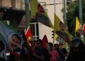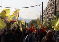 ATİNA – Eylemin ikinci etabında gençler coşku ile devam ederken şehir merkezine doğru RiseUp4Rojava dostları tarafından havai fişeklerle karşılandı. Oluşan tüm polis engellerine rağmen gençler yürüyüşlerini açıklama yapılacak olan Türk konsolosluğuna kadar devam ettirdi.