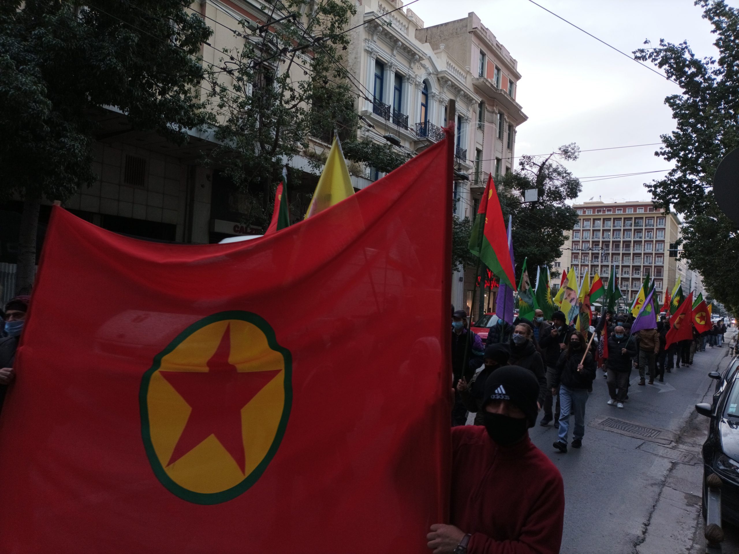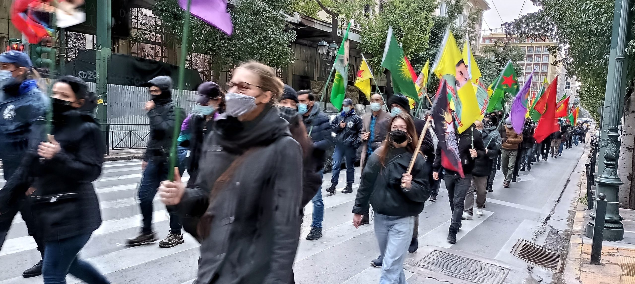 Yürüyüşe yüzlerce Kürdistanlı katıldı. Katliama dönük Yunanca bildiriler dağıtıldı. Yürüyüş esnasında sık sık “Biji Serok APO, katil Erdoğan, Faşist Erdoğan” ve “Şehîd Namirin” sloganları atıldı. Akademia önünde başlayan yürüyüş Halklar Önderi Abdullah Öcalan’ın posterleri, PKK, KCK bayrakları ile Türk konsolosluğuna kadar sürdü.