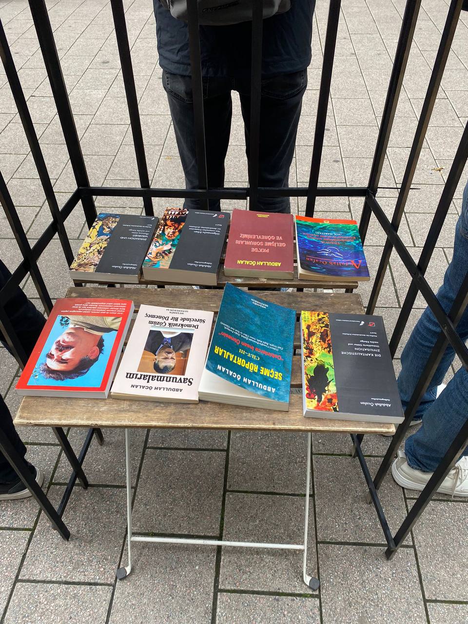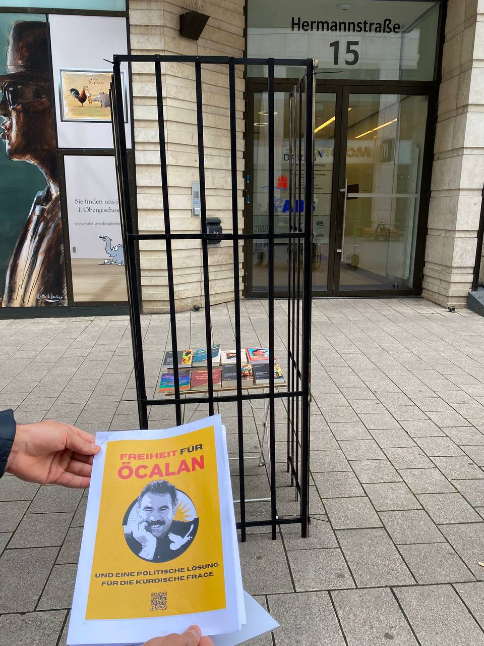 Sembolik bir hücrenin kullanıldığı eylemde, Önder APO’nun kitapları hücrenin içerisine konuldu.