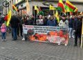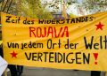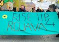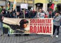 Rojavayı sahiplenme eylemi dün gece saatlerinde başlayan Kobanê merkezli hava saldırısına Kürt halkı ve dostları Avrupa’da her alanda sahip çıkmaya devam ediyor. Freiburg’da bugün yapılan eylemde faşist Türk devleti ve ona finansman sağlayan Avrupa devletleri protesto edildi.” Şehit Namirin” “Kahrolsun Faşist Türk Devleti”, “Katil Erdoğan”, “Terörist Erdoğan” sloganları atıldı.