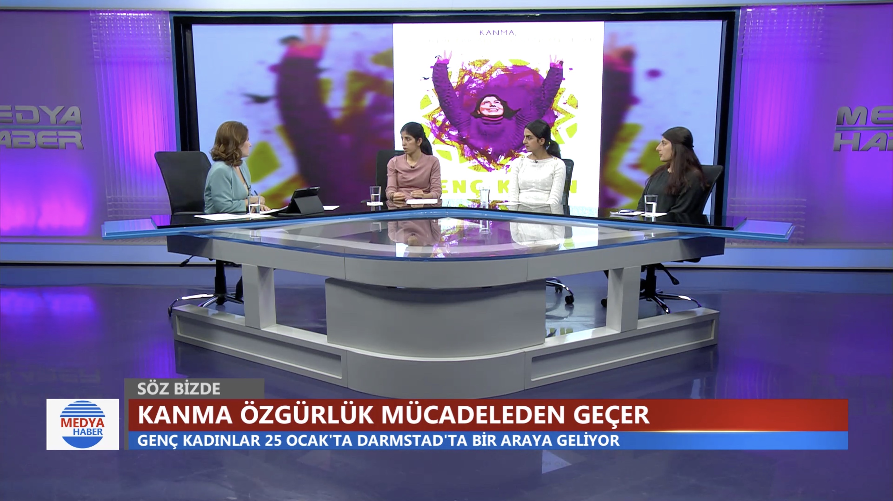 HABER MERKEZİ – Gazeteci Heval Aslan’ın sunduğu Medya Haber’de yayınlanan ‘Söz Bizde’ programına katılan Jinên Ciwan ên Azad aktivistleri Faraşîn Sîdar, Newal Riha ve Şîlan Dêrsim, genç kadınların sorunları, AKP/MHP iktidarının Kuzey Kürdistan’da genç kadınlara yönelimi ve 25 Ocak’ta Almanya Darmstadt’da düzenlenecek olan Genç Kadın Kongresi üzerine değerlendirmelerde bulundular.