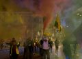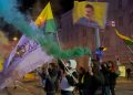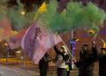 Gençler faşistlere karşılık yaktıkları renkli meşalelerle birlikte „Bijî Berxwedana Gerîla“ sloganını haykırdı.