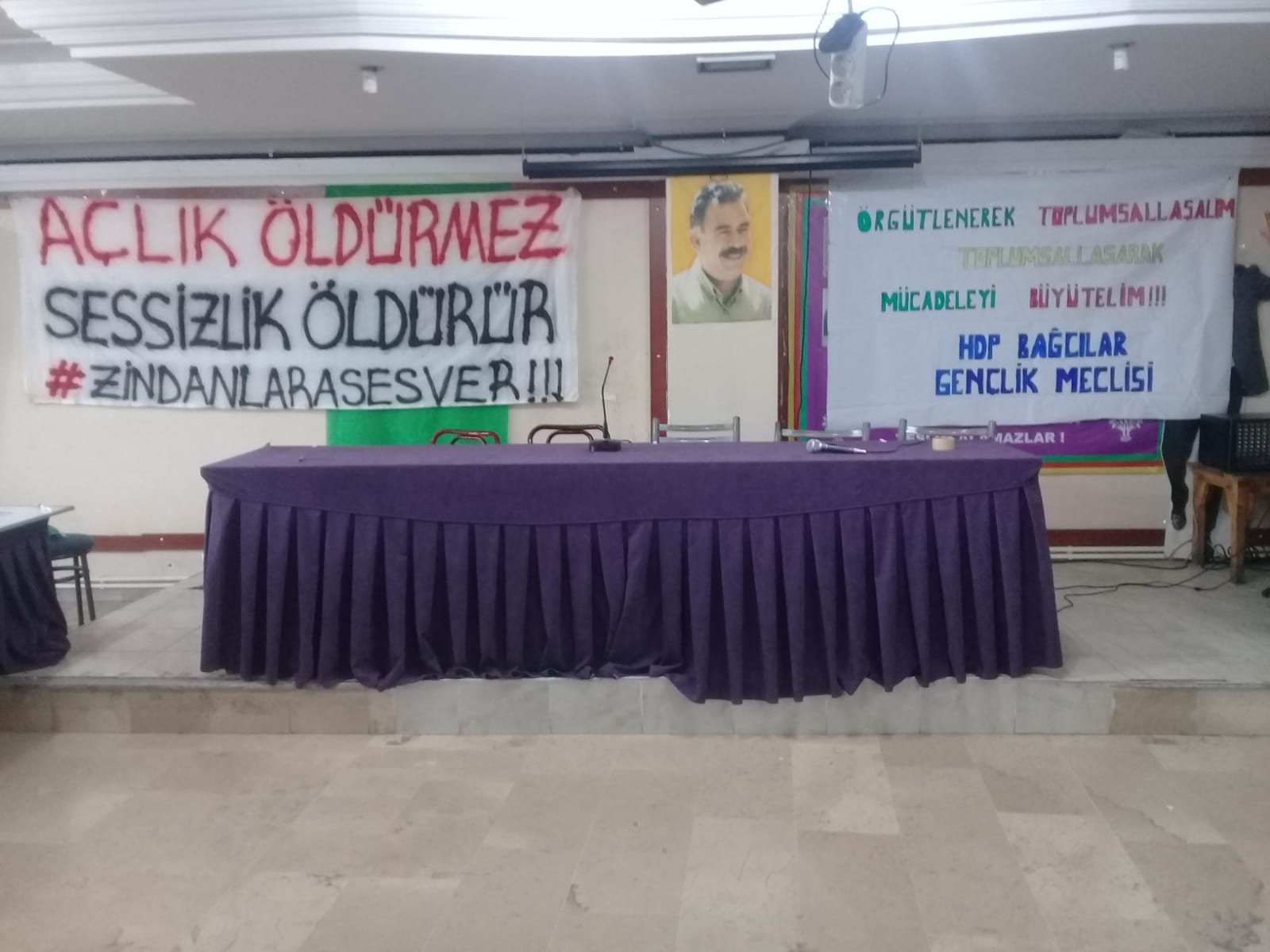 HDP Urfa Milletvekili Ömer Öcalan’ın da katıldığı toplantıda, açlık grevlerine ilişkin pankartlar asıldı. Saygı duruşunun yapıldığı toplantıda, basın metninin okunmasıyla HDP Bağcılar Gençlik Meclisi ilan edildi.