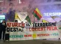Sık sık “Jin Jiyan Azadî” ve “Bijî Berxwedana YPG-YPJ” sloganlarının atıldığı yürüyüş, Türk Konsolosluğu önünde basın açıklaması ile son buldu.