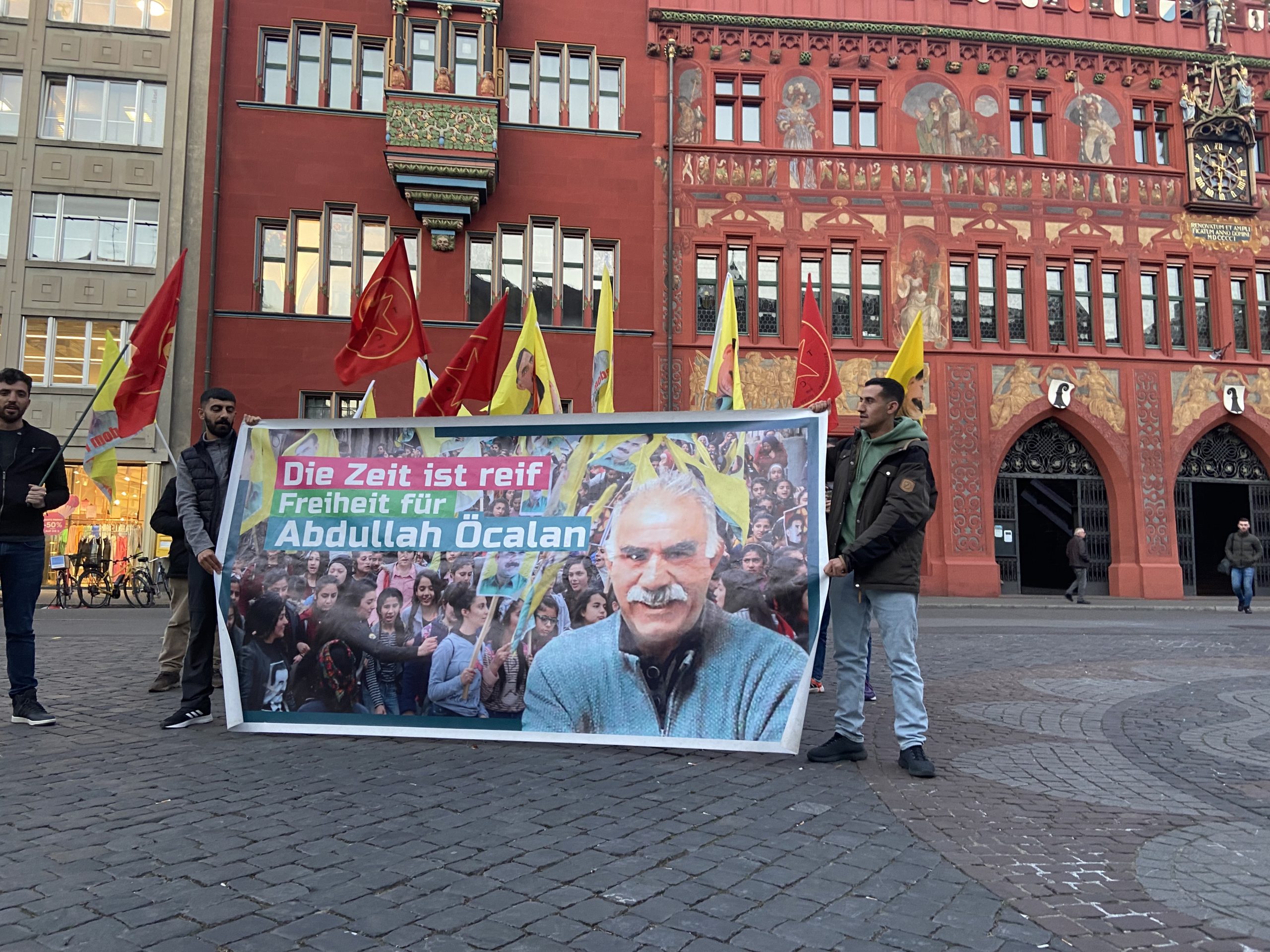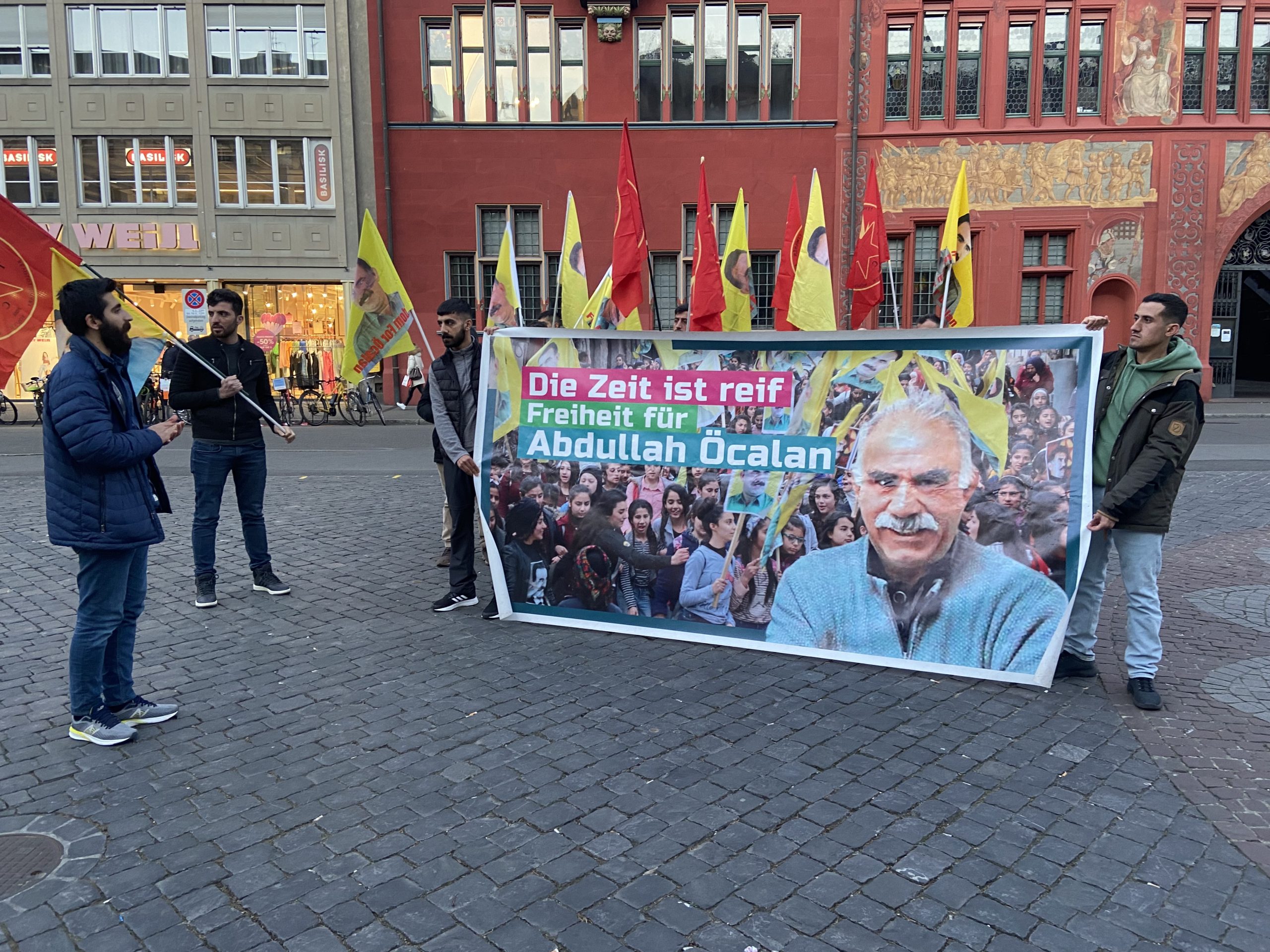 Marktplatz’da gerçekleştirilen mitinge TCŞ ve TekoJIN öncülüğünde Basel’deki yurtseverlerde katılım sağladı. Eylem esnasında üzerinde “Die Zeit ist reif. Freiheit für Abdullah Öcalan!” (Artık Önder APO’nun özgürlüğünün vakti gelmiştir.) yazılı pankart açıldı. Aynı zamanda çok sayıda TCŞ ve Önder APO bayrakları açıldı.