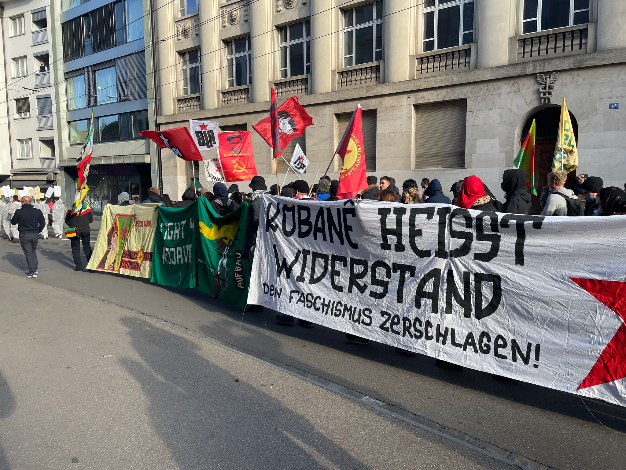 İsviçre’nin Basel kantonunda TCŞ ve TekoJIN aktivistleri öncülüğünde “Werin Cenga Azadiyê” hamlesi kapsamında, faşist TC zihniyetinin kimyasal silah kullanımı ve 1 Kasım Dünya Kobanê Günü vesilesiyle bir yürüyüş gerçekleştirildi.