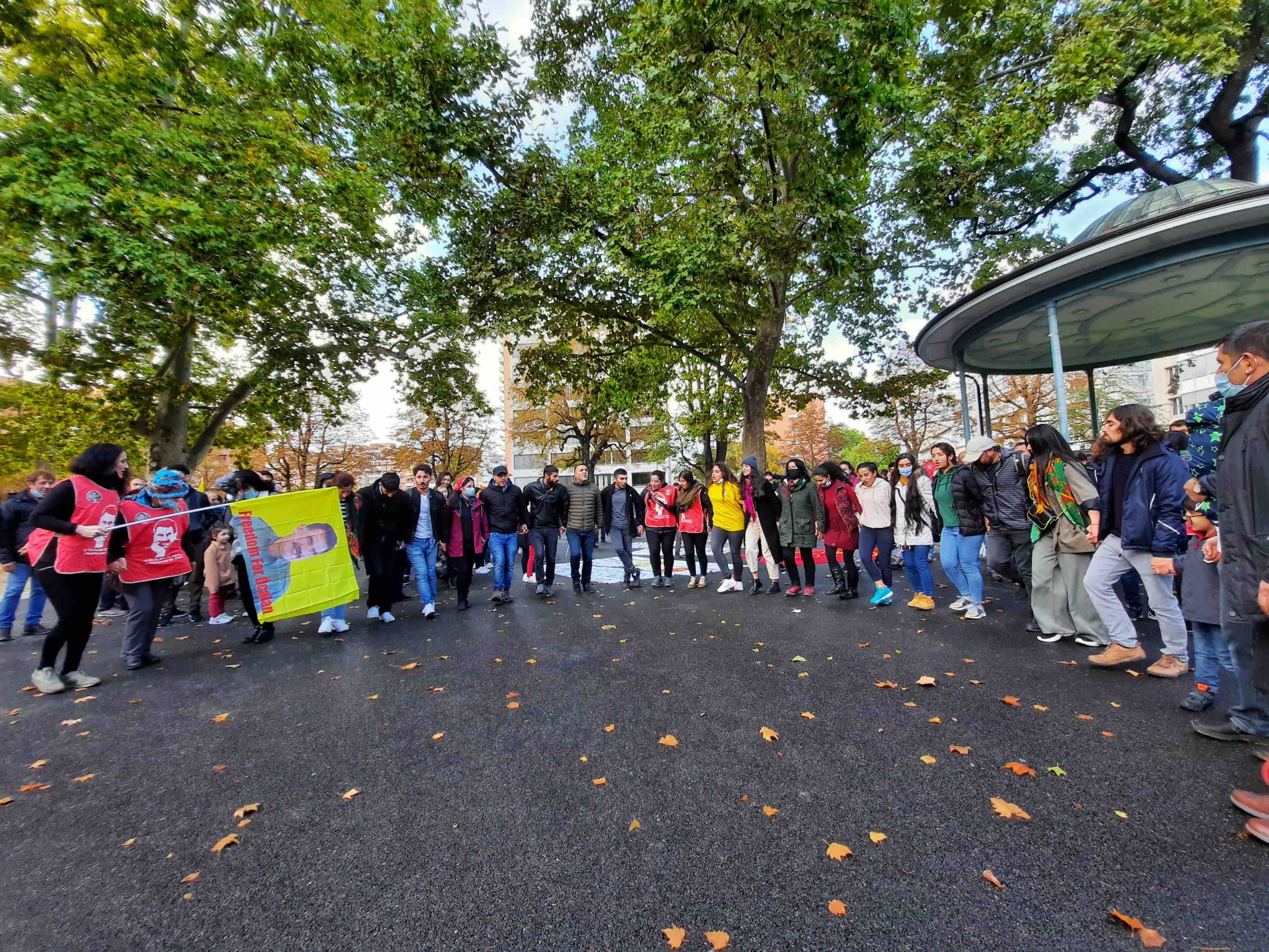 BASEL – Devletlerarası komplonun 22.yılı geride kalırken Avrupa’da yaşayan Kürt gençleri ve Kürdistanlıların eylemleri sürüyor. 10 Ekim Dünya Öcalan’a Özgürlük günü vesilesiyle İsviçre’nin Basel kentinde düzenlenen yürüyüşte eylemciler, “Tecride, Faşizme, İşgale Son: Bi Hev Re Serhildan” dedi.
