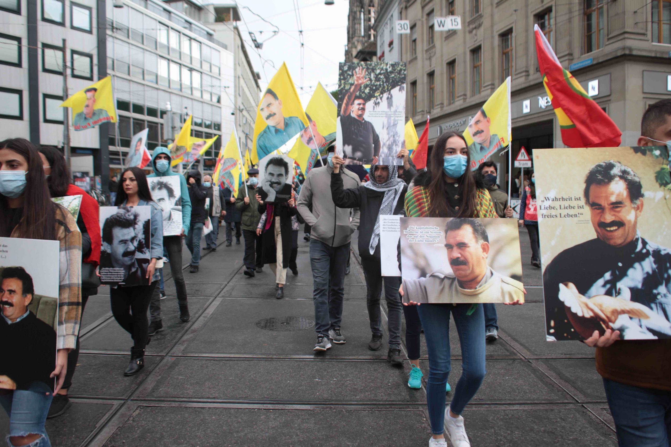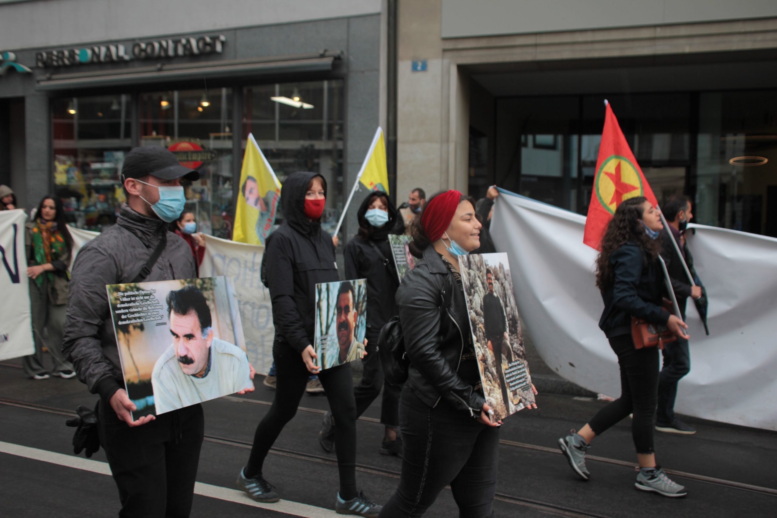 İsviçre Kürt Kadın Hareket,, Tevgera Ciwanên Şoreşger ve Jinên Ciwan ê Têkoşer öncülüğünde düzenlenen eylemde, “Für Die Freiheit Von Abdullah Öcalan Bi Hev Re Serhildan”, “Em Dibêjin NA”, “Est İst Genau Die Zeit Für Öcalans Freiheit” pankartları açılırken, çok sayıda Önder Öcalan’ın posterleri, PKK, KCK, TCŞ bayrakları taşındı.