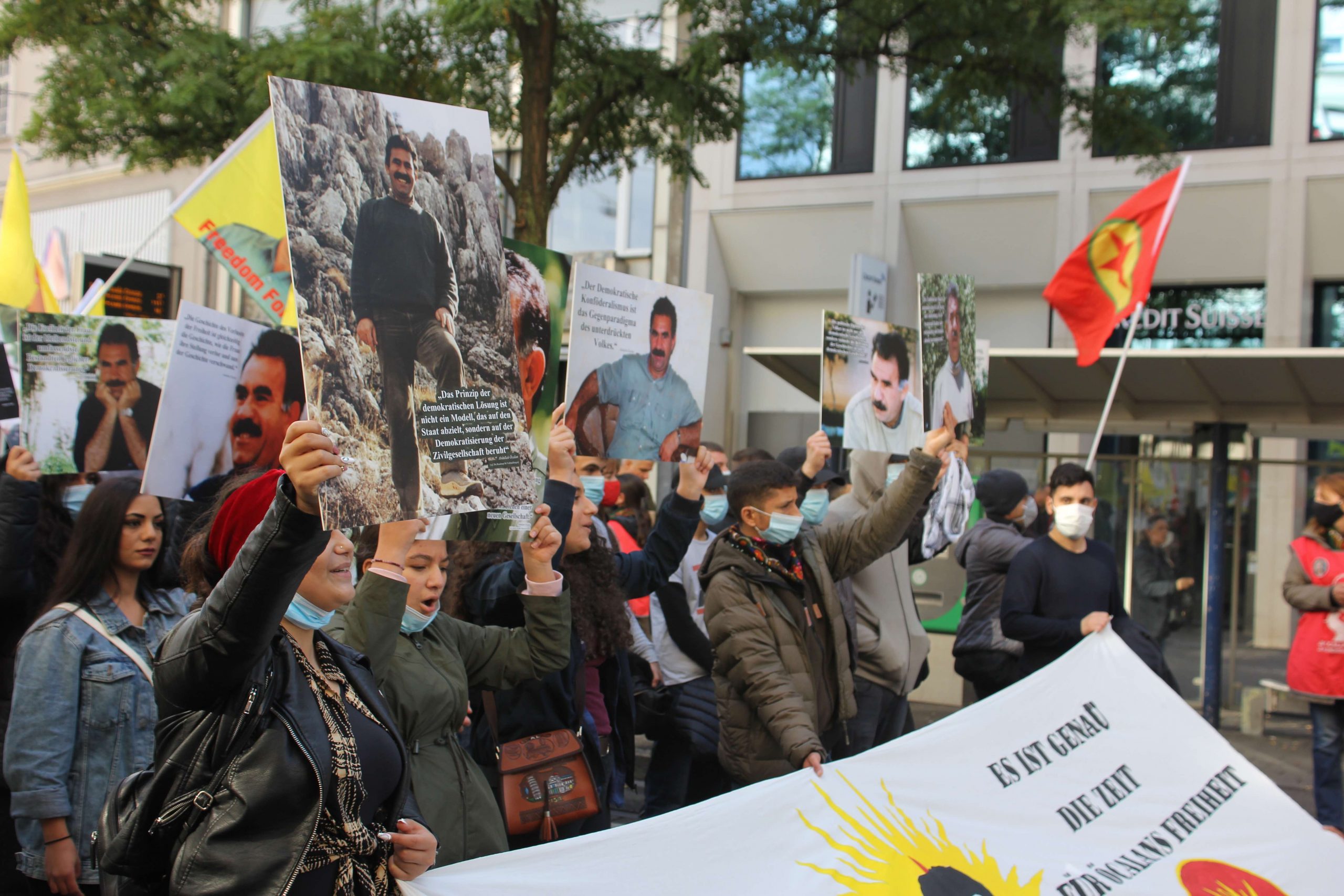 Almanca ve Kürtçe, “Öcalan’a Özgürlük” sloganları atılırken, Türk faşizmi de teşhir edildi. Gençliğin eyleme katılımı ve eylemdeki coşkusu dikkat çekerken, taşıdıkları büyük Öcalan dövizleri çevredeki insanların ilgisini çekti.