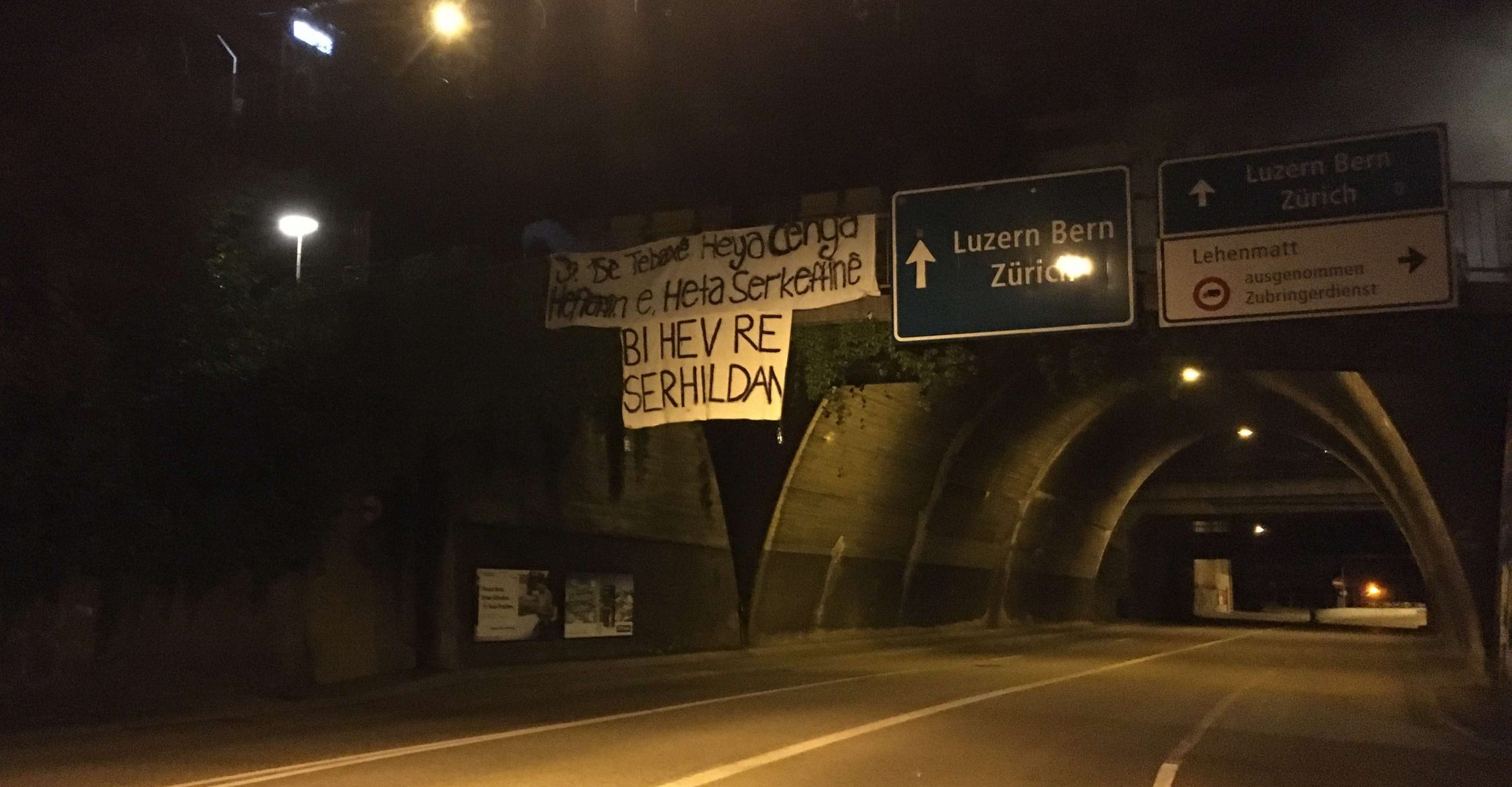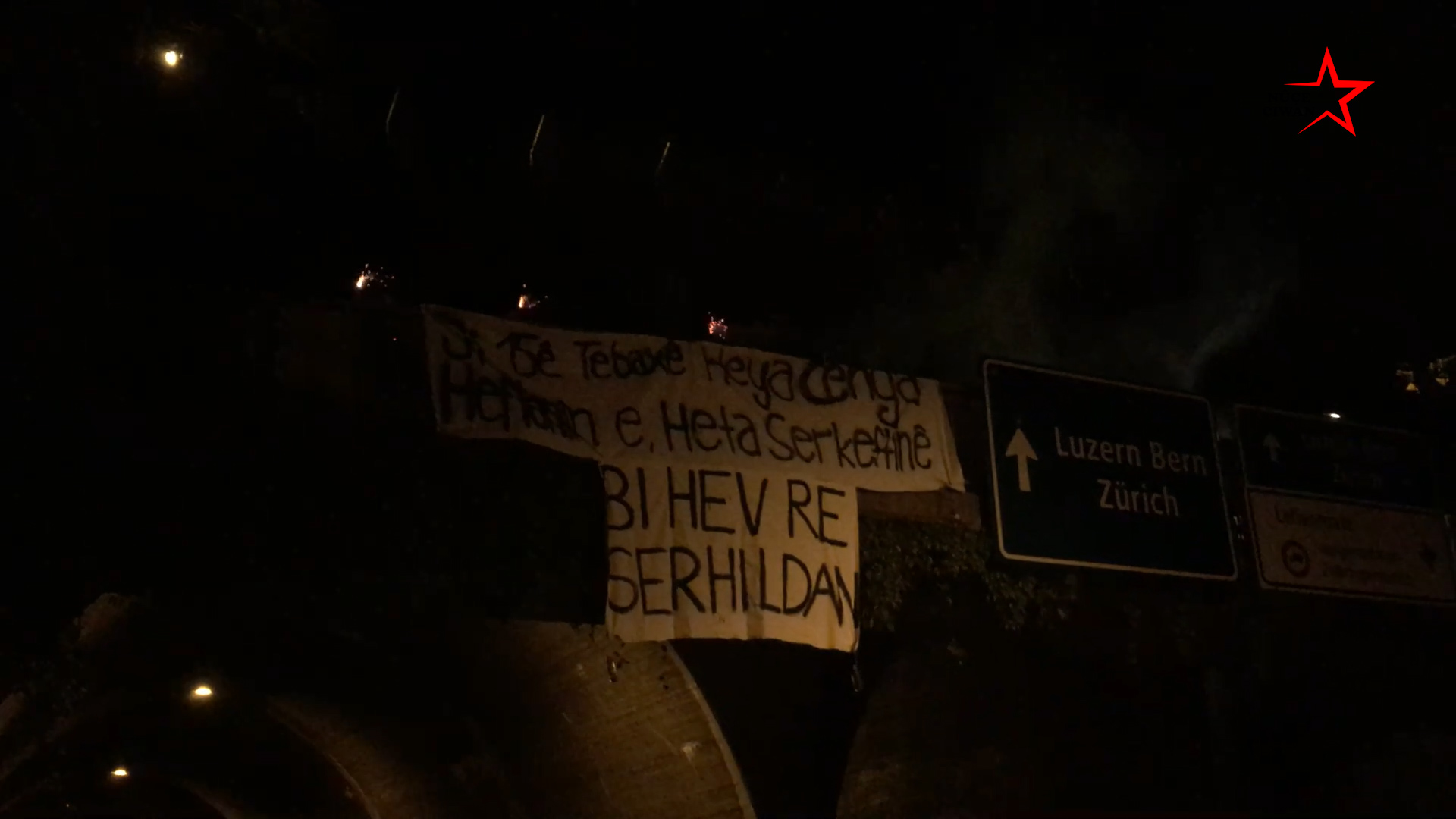 İsviçre’nin Basel kentinde TCŞ ve TEKO-JIN aktivisti gençler ve genç kadınlar, 15 Ağustos diriliş bayramını otobana astıkları pankart ile kutladı.