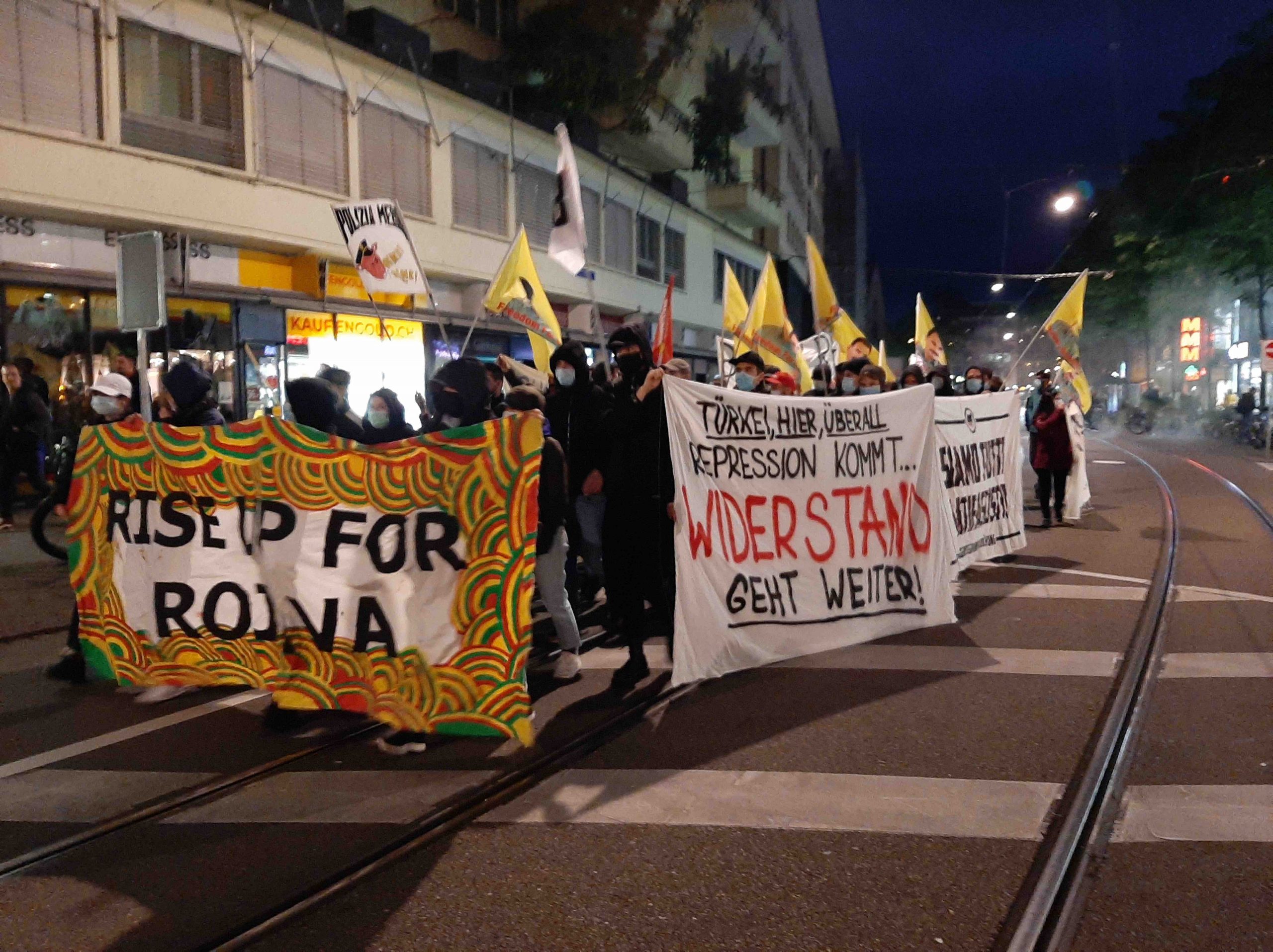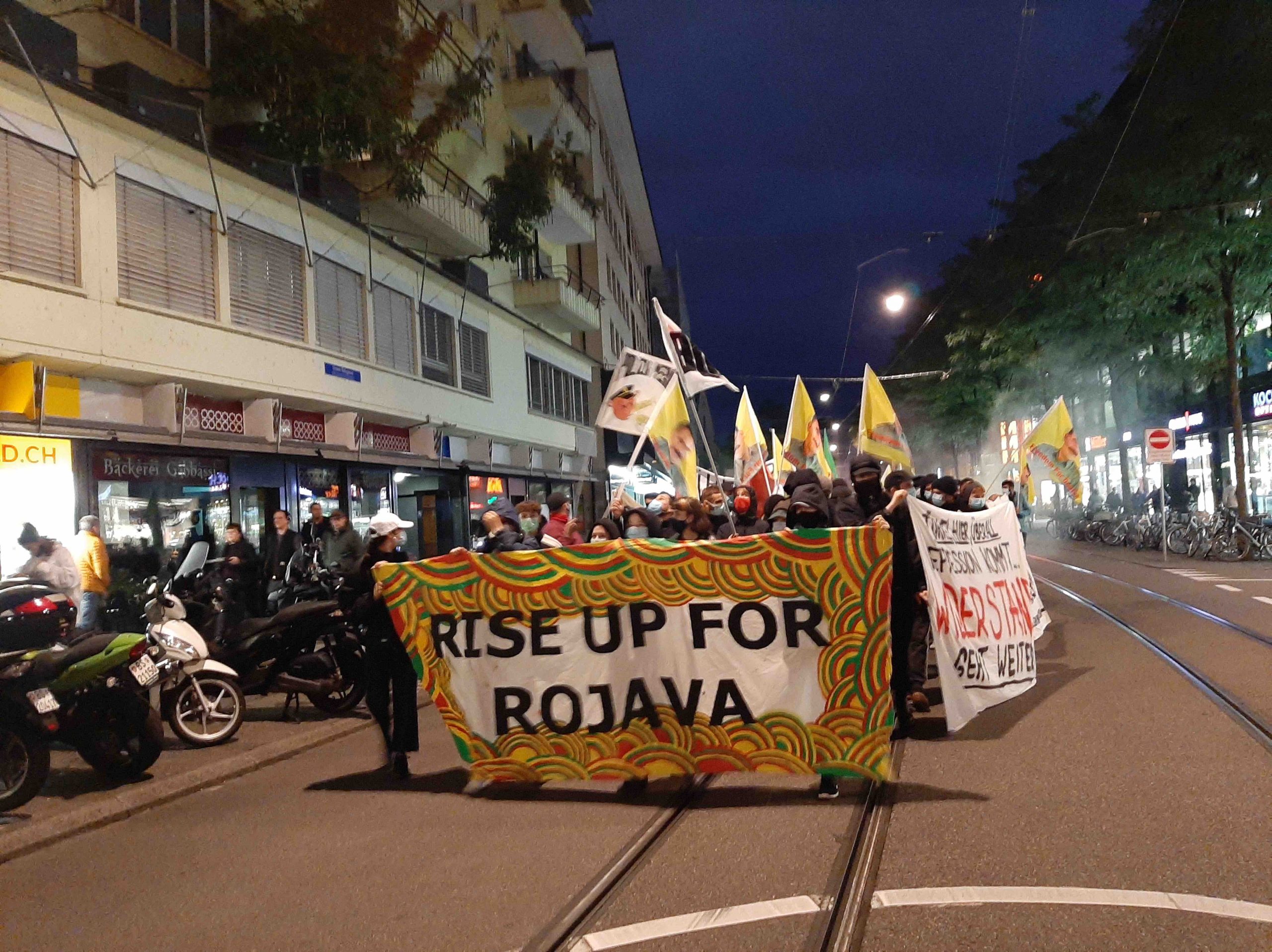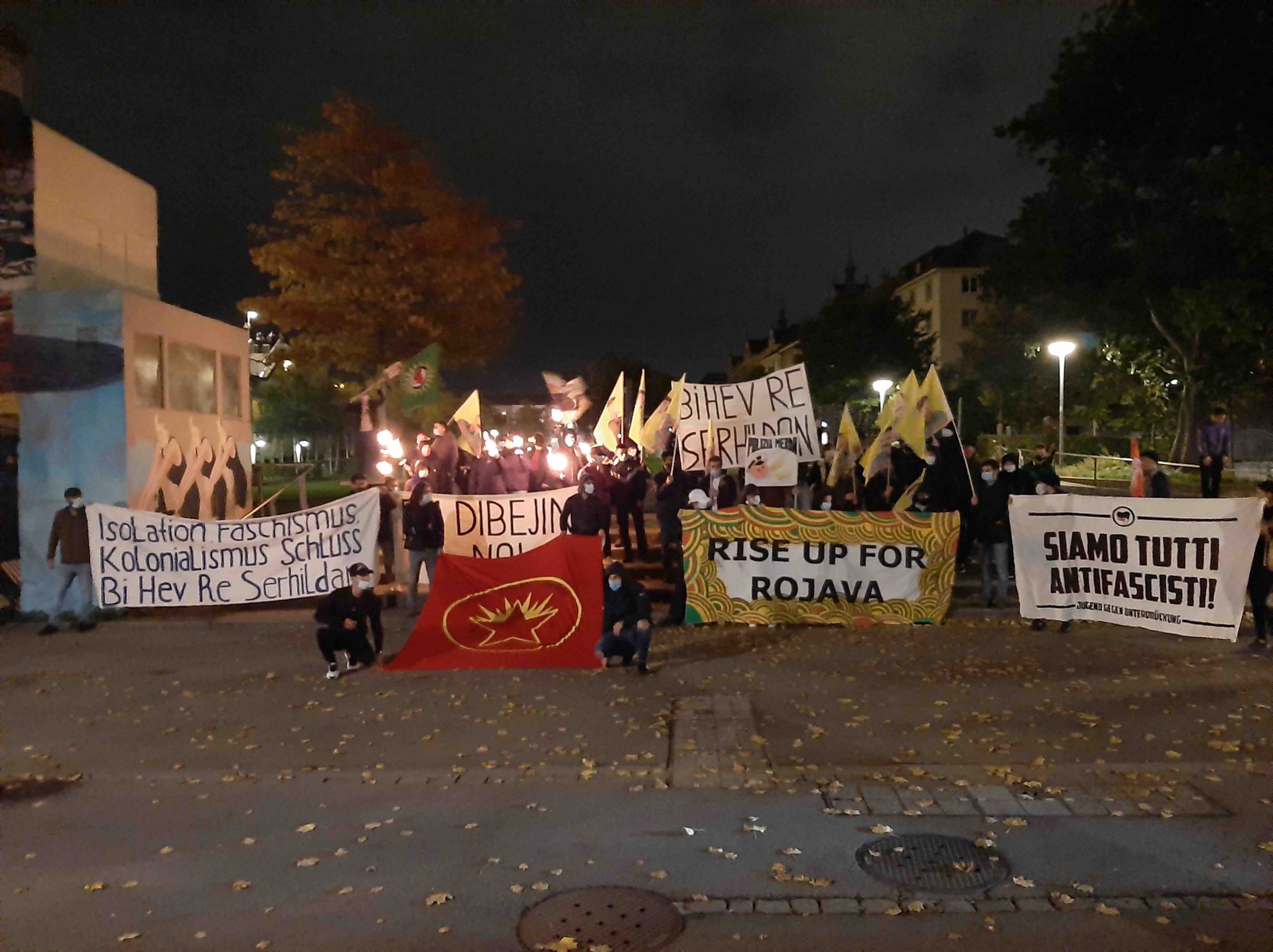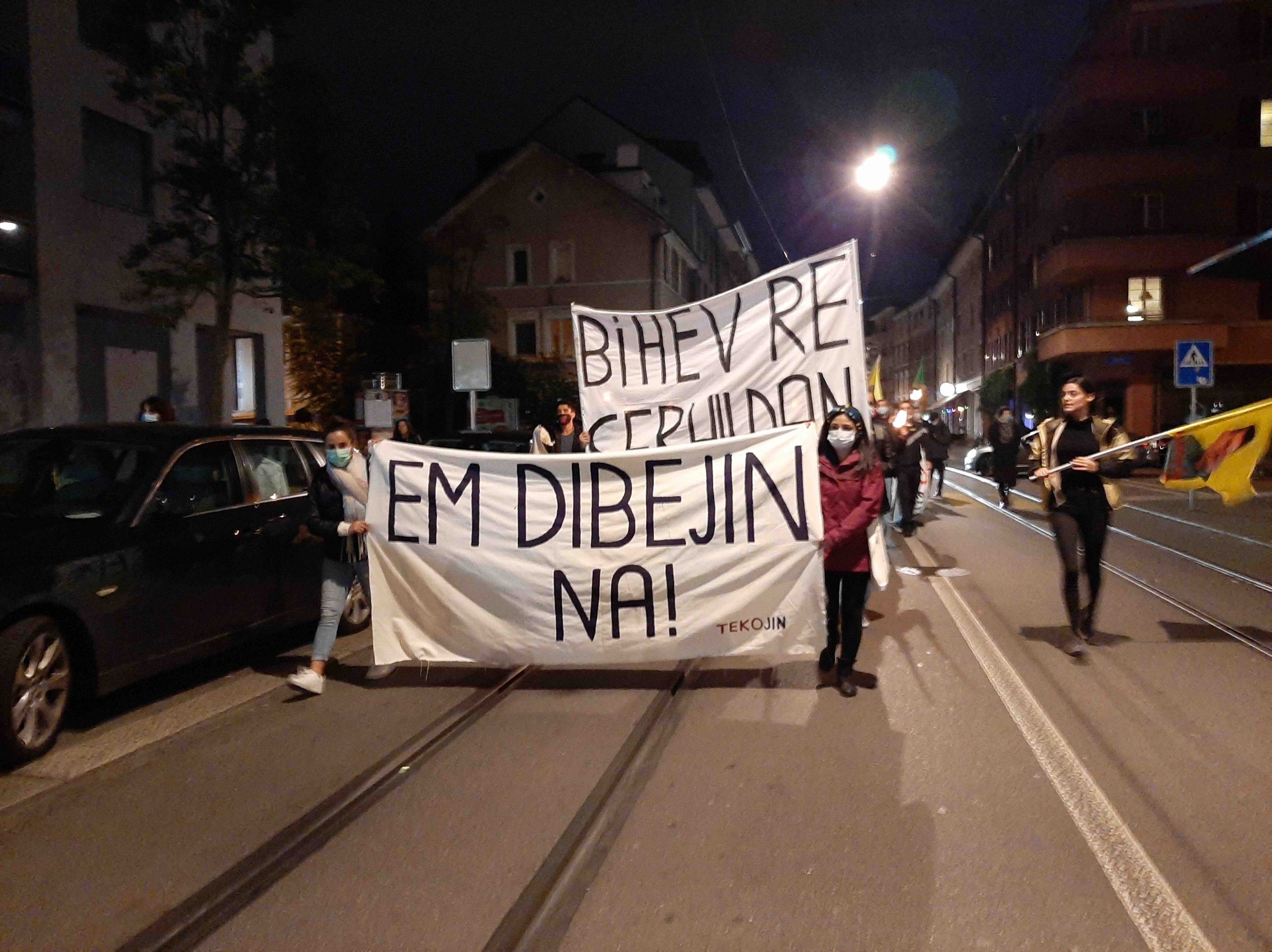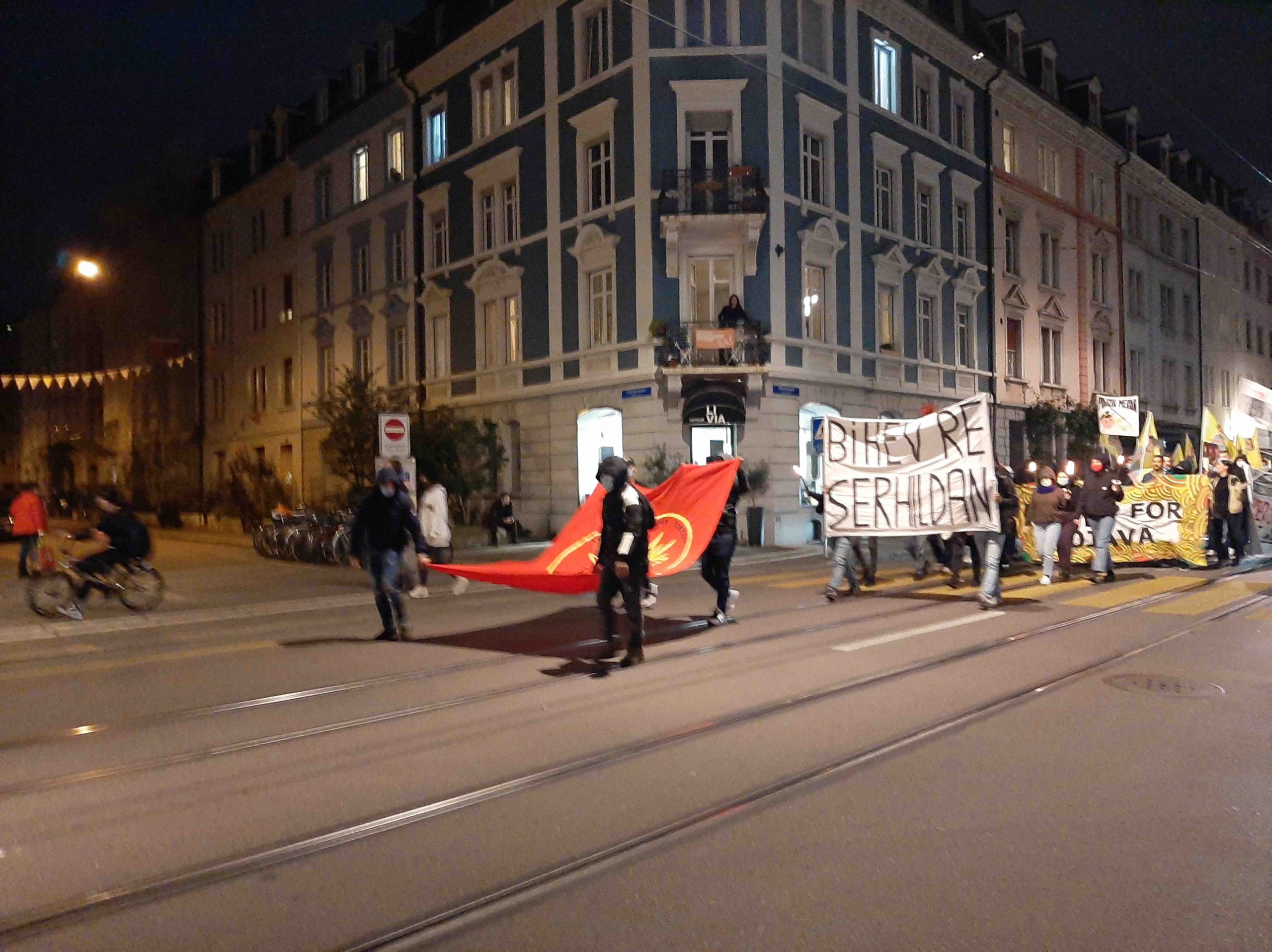 İsviçre’nin Basel kentinde, Kürt ve enternasyonalist gençler, “Tecride, Faşizme, İşgale Son: Bi Hev Re Serhildan” şiarıyla meşaleli bir yürüyüş gerçekleştirdi.