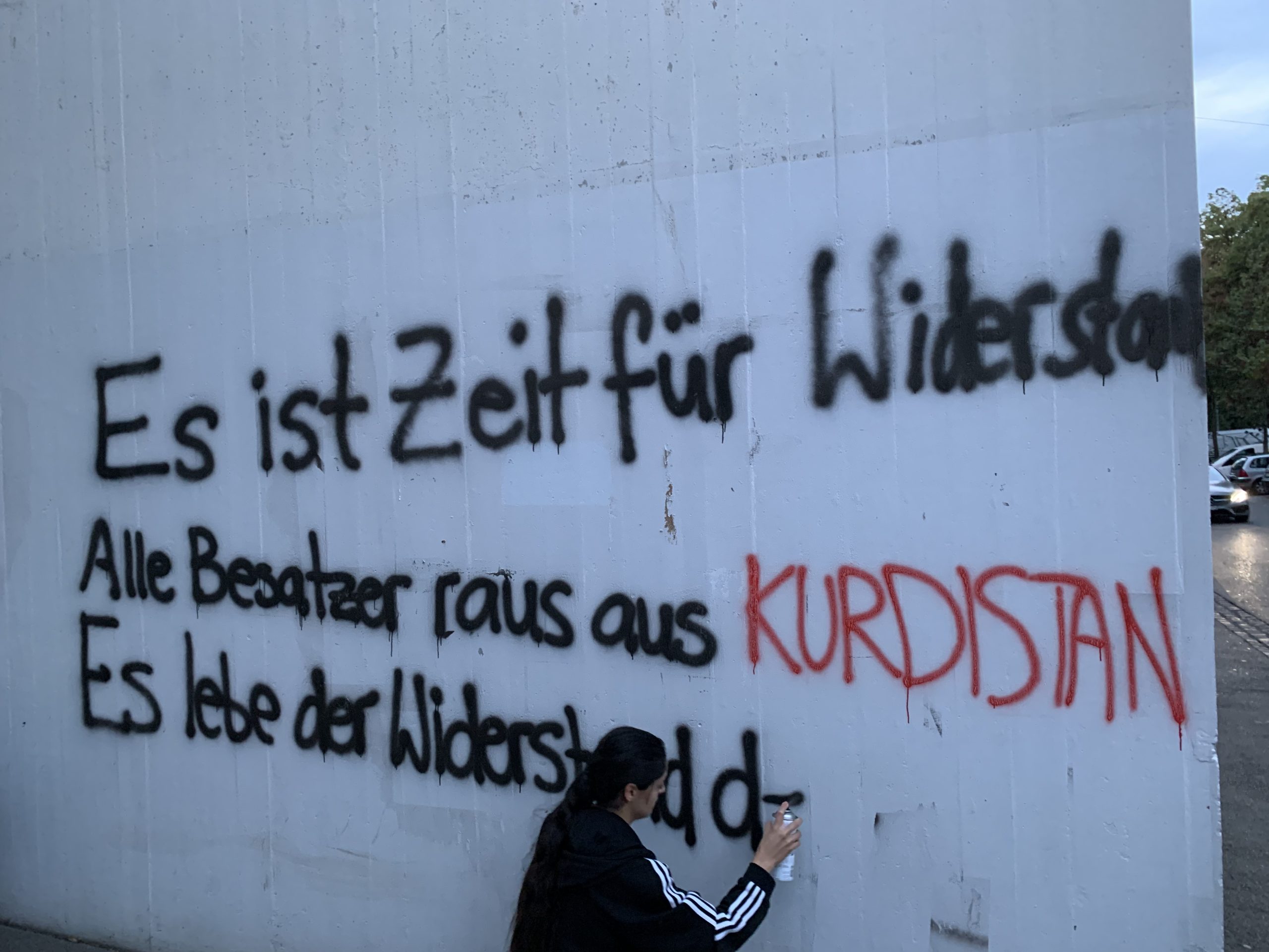 BASEL – Akşam saatlerinde İsviçre’nin Basel kentinde JXK aktivistleri bir eylem daha gerçekleştirdi. Eylemlerinde Kürdistan’da faşist TC zihniyetinin kullandığı kimyasal silahlara ilişkin bir açıklamada bulunan genç kadınlar , tüm yurtsever halkı bu saldırılara karşı sessiz kalmamalarını ve Kahramanca savaşan Gerillanın direnişine sahip çıkılması için alanlara çağırdı.