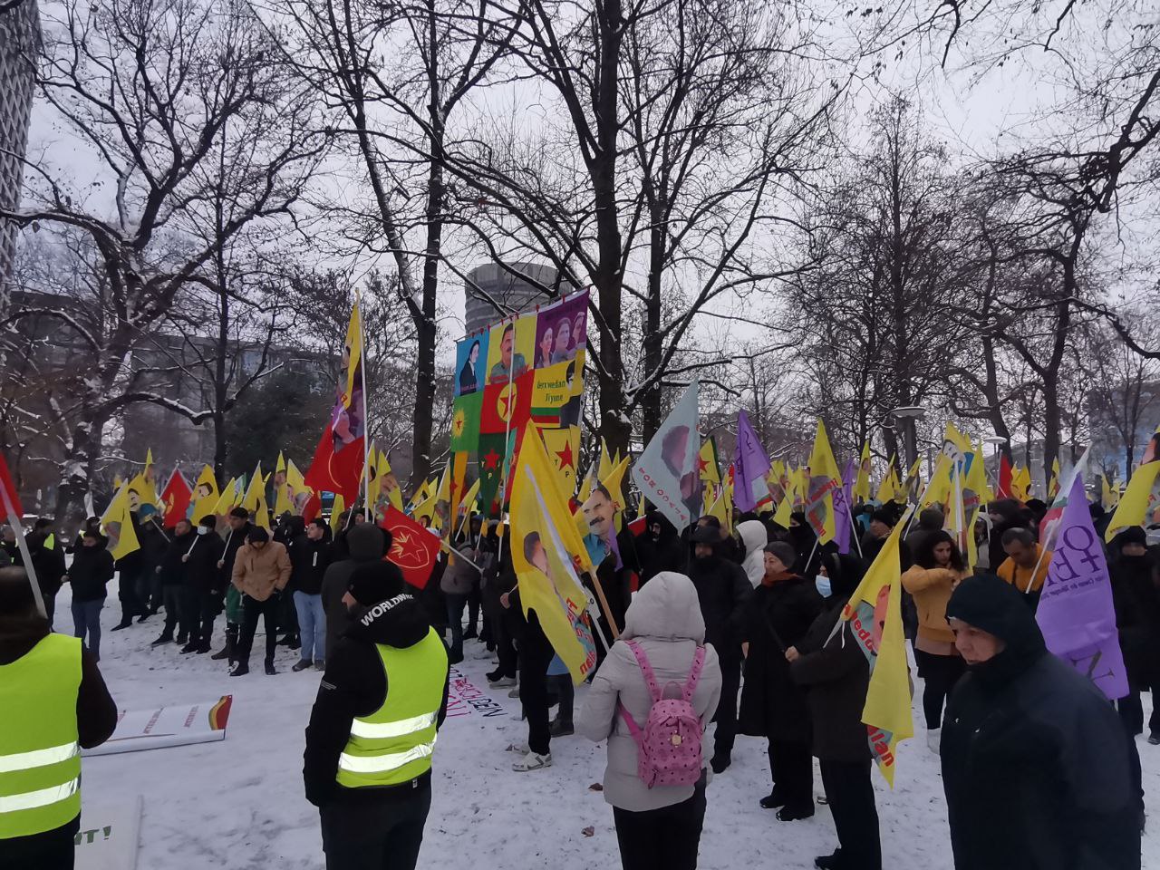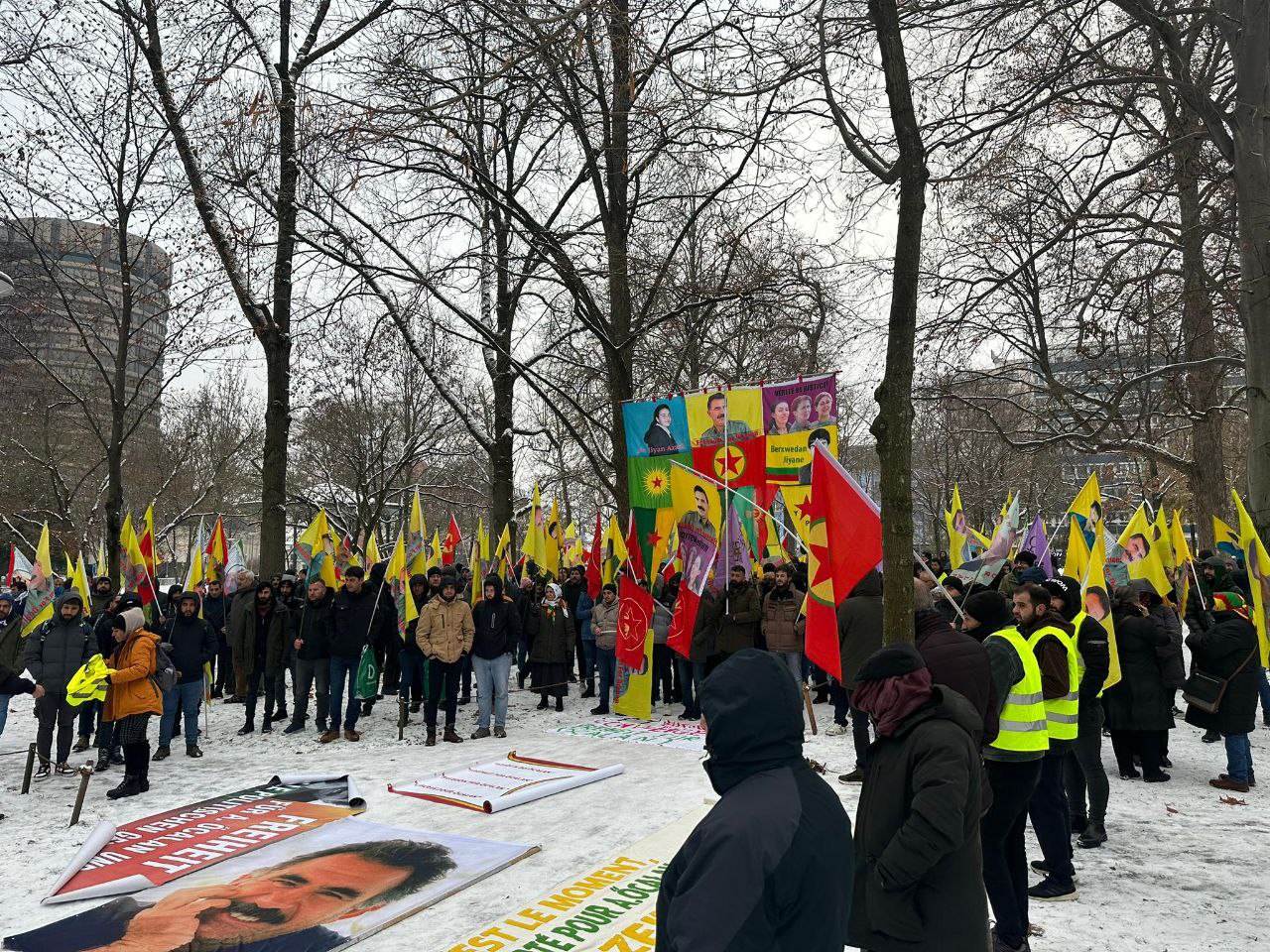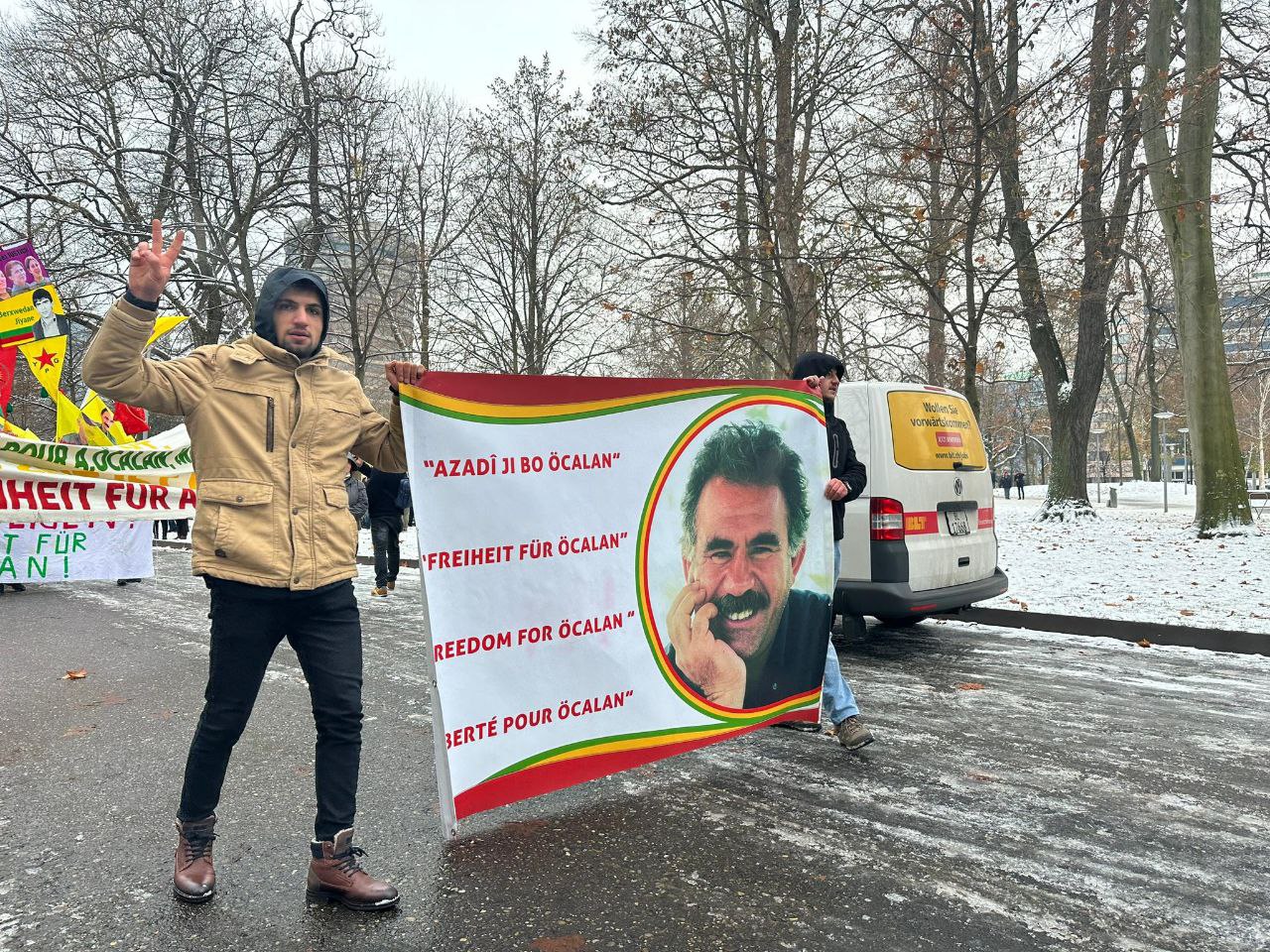 Yürüyüşçüler pankart ile PKK bayrakları ve Halklar Önderi Abdullah Öcalan posterleriyle yürüyüşe başladı. Kötü hava koşullarına rağmen gençler coşkuyla yürüyüşlerini sürdürdü.