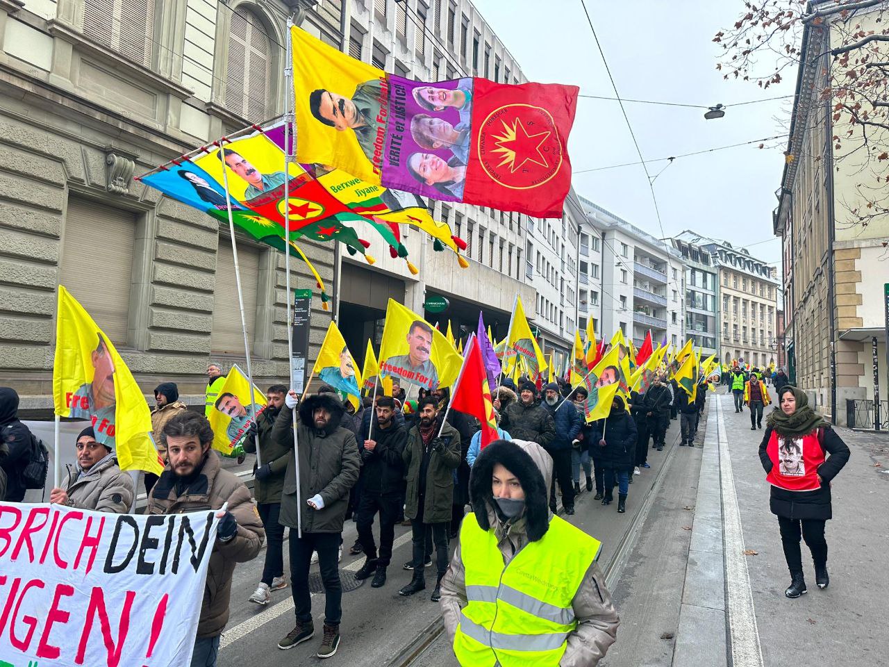 BASEL – Gençlik hareketleri TCŞ ve TekoJIN öncülüğünde, “Werin Cenga Azadiyê” hamlesi kapsamında İsviçre’nin Basel Kantonu’nda Önder APO’nun fiziki özgürlüğü için eylem gerçekleştirildi.